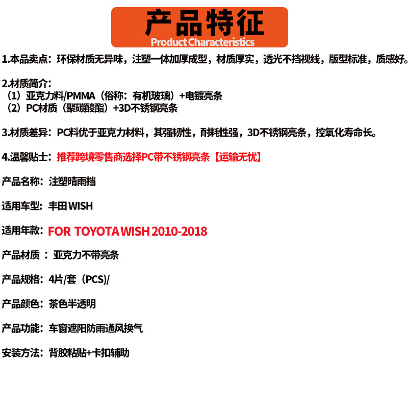 • Toyota Xiaobawang Weixiu Wish 2009-2017 PS 밝은 스트립 없음