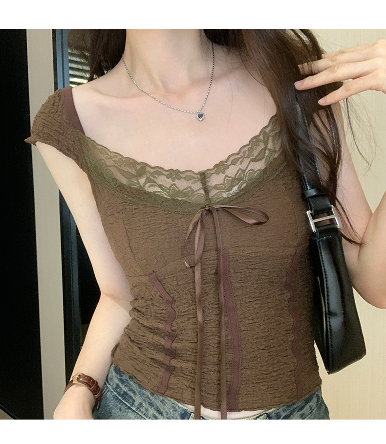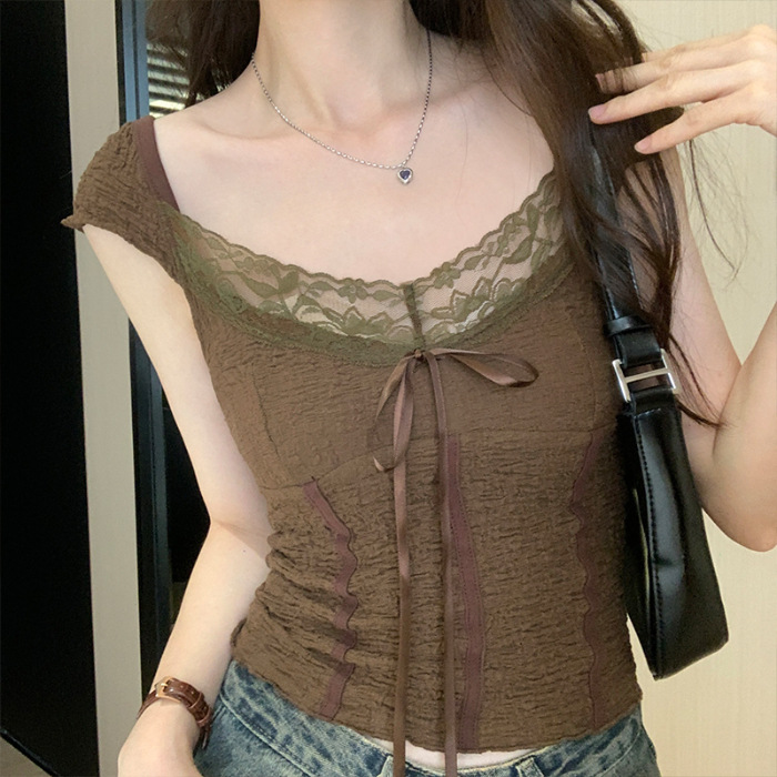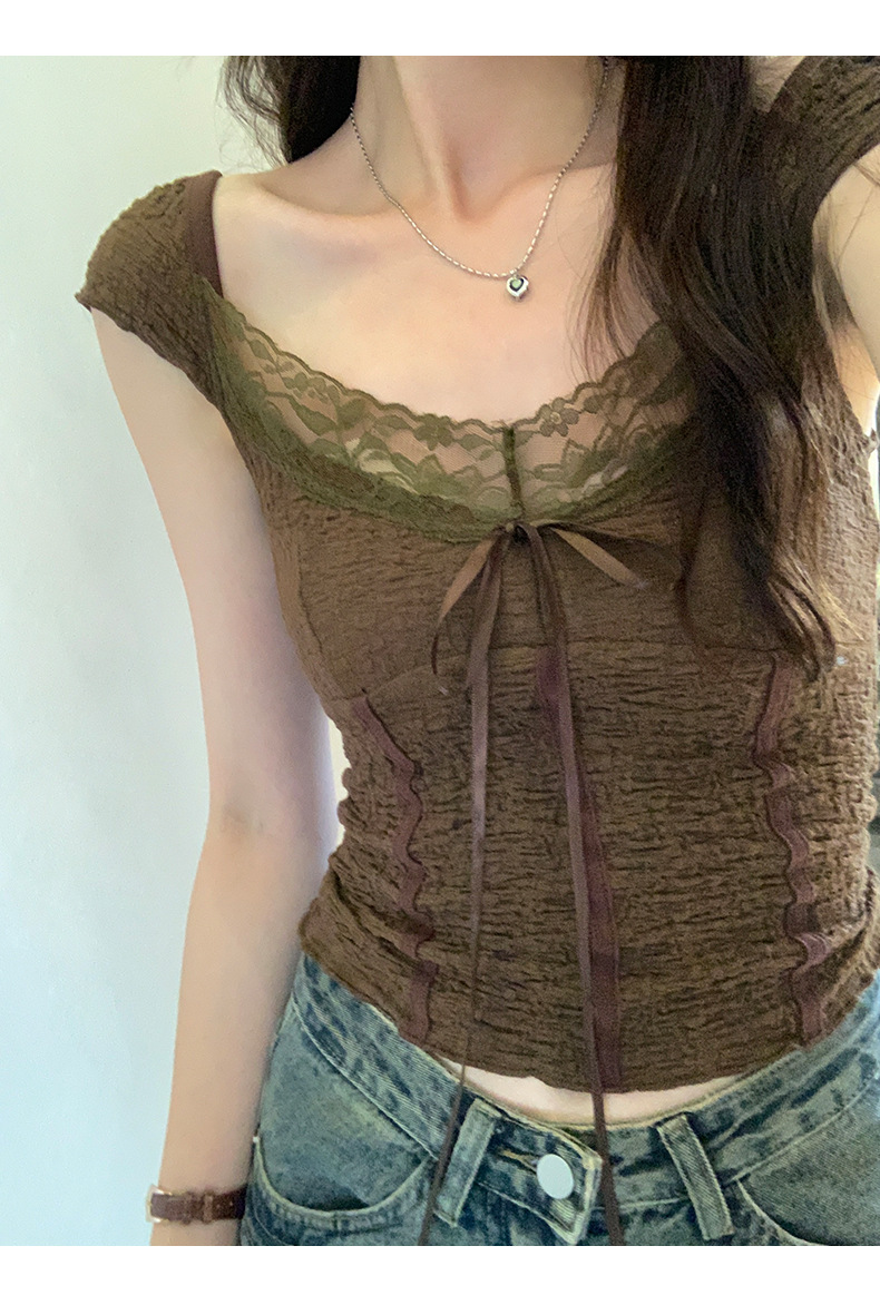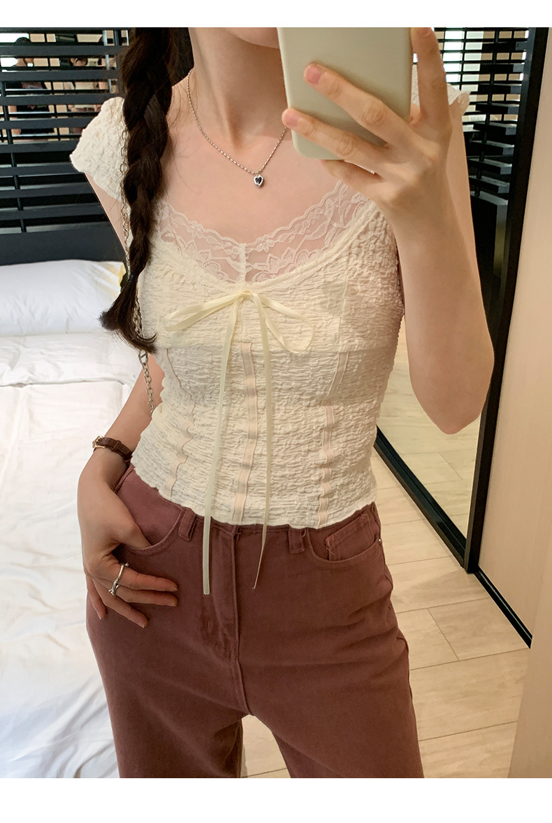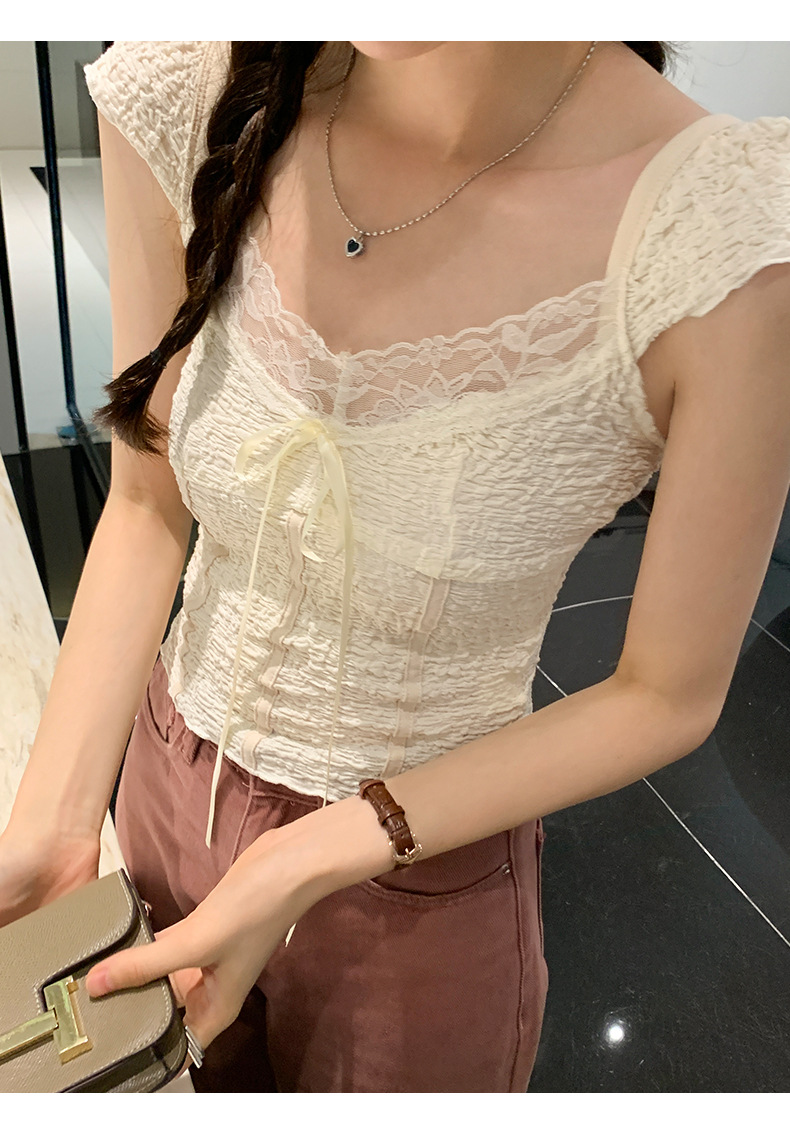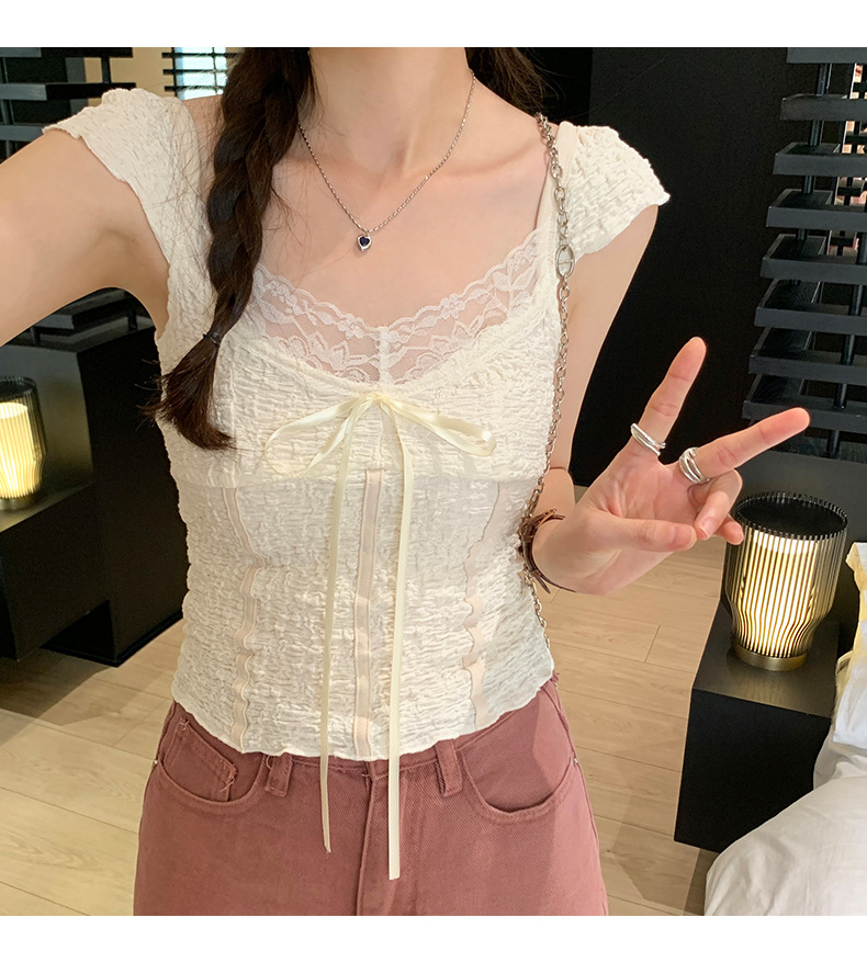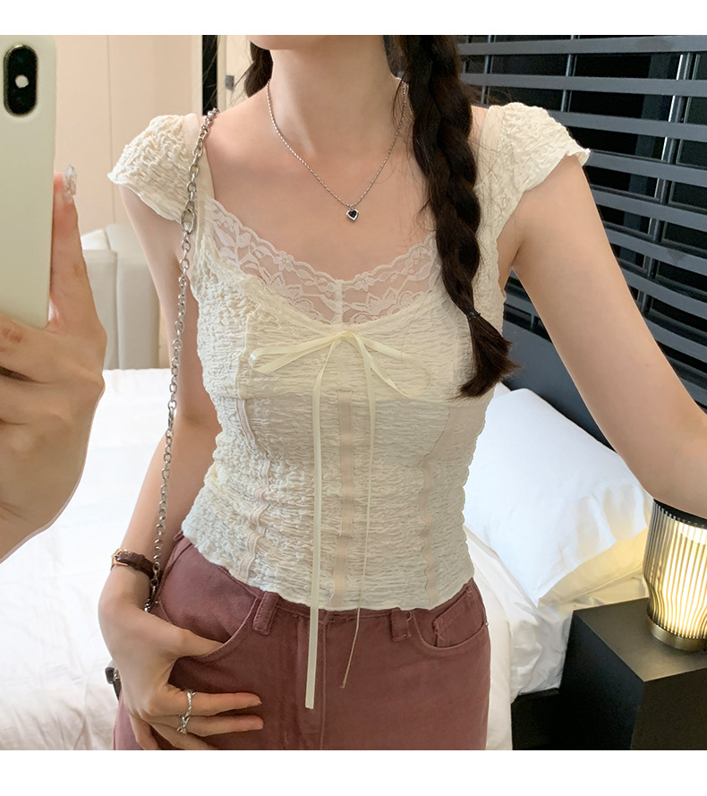 순수 화이트 레이스 조끼 티셔츠 여성 여름 디자인 달콤하고 뜨거운 독특한 세련된 아름다운 짧은 탑