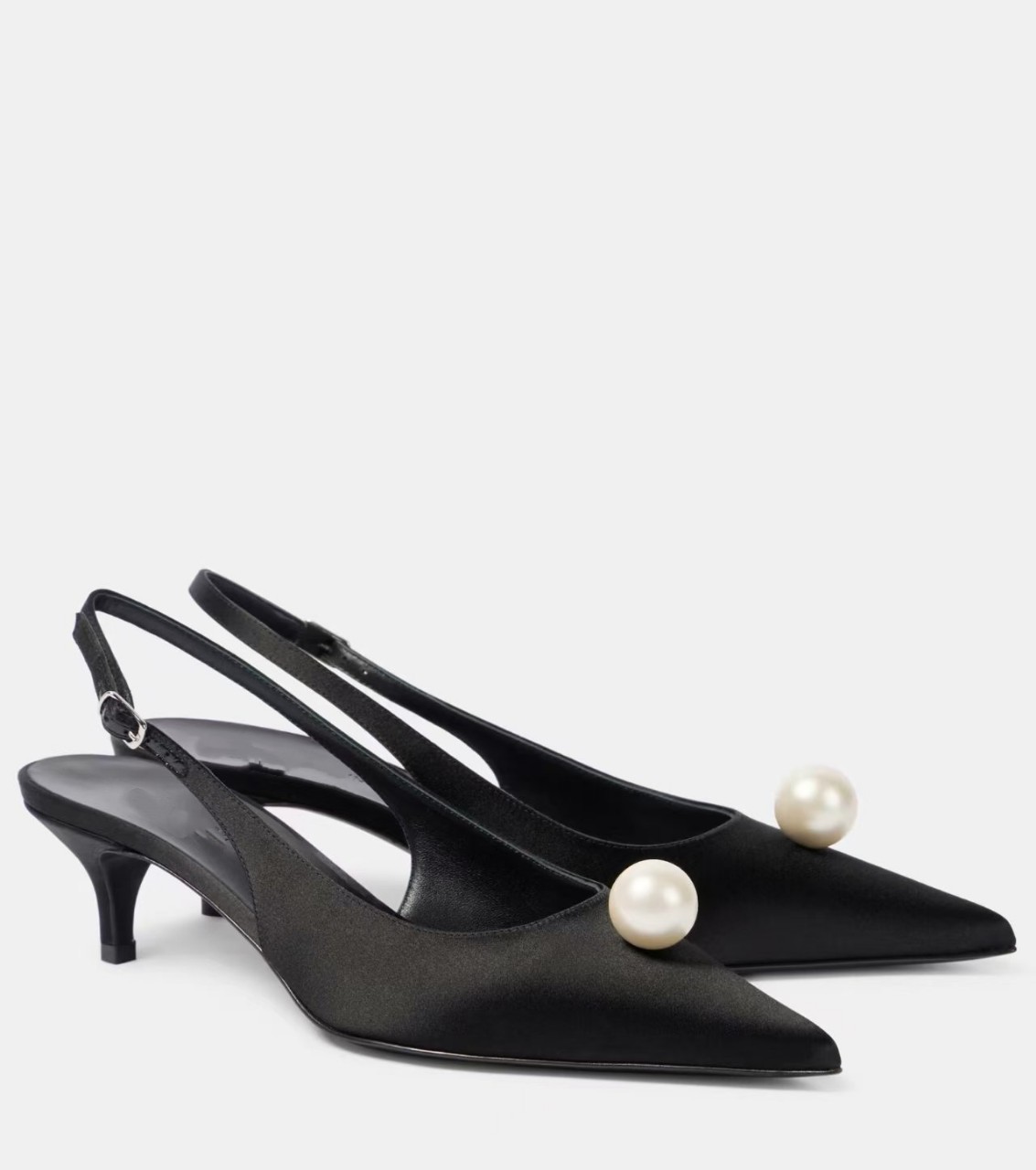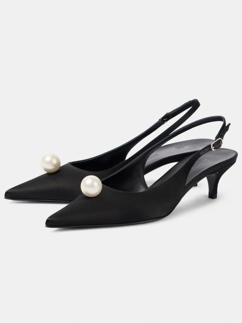 2025 년 여름 새로운 진주 장식 요정 스타일 화이트 바오 터우 샌들 여성 파인 힐 하이힐 올 매치 포인팅 싱글 레이어 신발스토어 가기