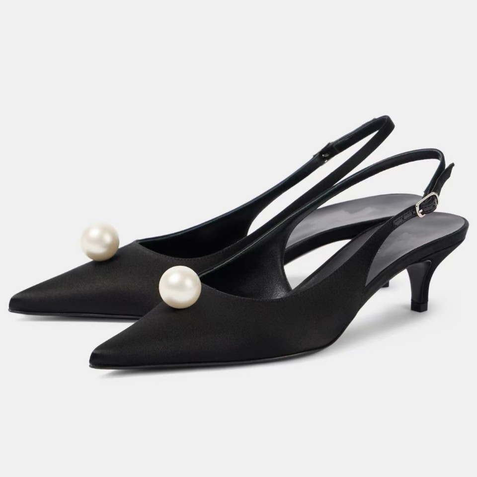 2025 년 여름 새로운 진주 장식 요정 스타일 화이트 바오 터우 샌들 여성 파인 힐 하이힐 올 매치 포인팅 싱글 레이어 신발