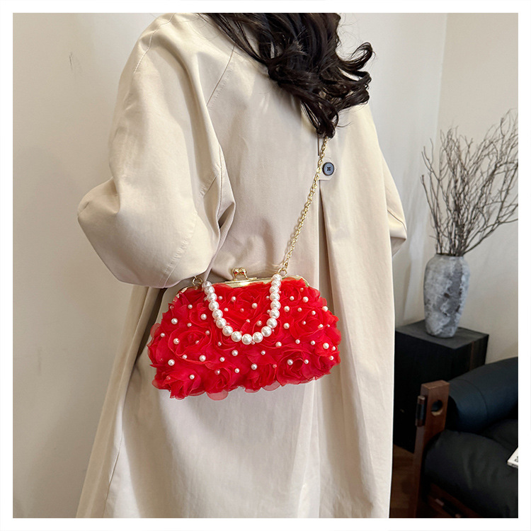 유럽과 미국 뉴 로즈 진주 디너 체인백 연회 핸드백 청삼 저녁 올매치 크로스백