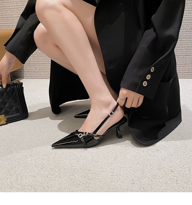대외 무역 하이힐 여성 신발 2024 새로운 도착 봄과 여름 올 매치 한 단어 버클 스트랩 유럽과 미국의 포인티드 할로우 아웃 얇은 발 바오 터우 샌들스토어 가기