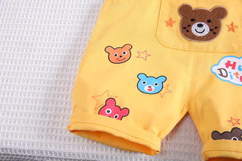 어린이 의류 소년 여름 의류 세트 소녀 아기 레인보우 베어 스트랩 짧은 소매 투피스 세트 아동복