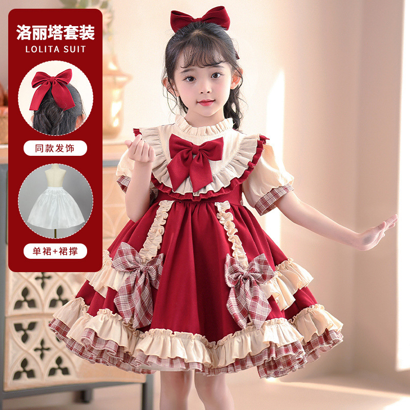 로리타 여름 소녀 공주 원피스 여름 어린이 원피스 2024 아기를위한 새로운 로리타 원피스