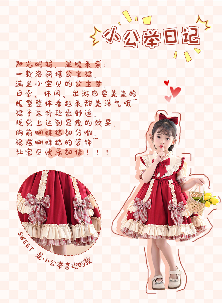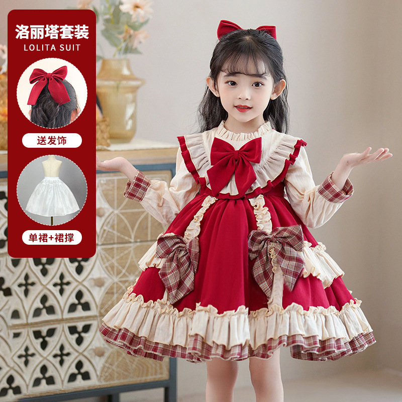 로리타 여름 소녀 공주 원피스 여름 어린이 원피스 2024 아기를위한 새로운 로리타 원피스스토어 가기