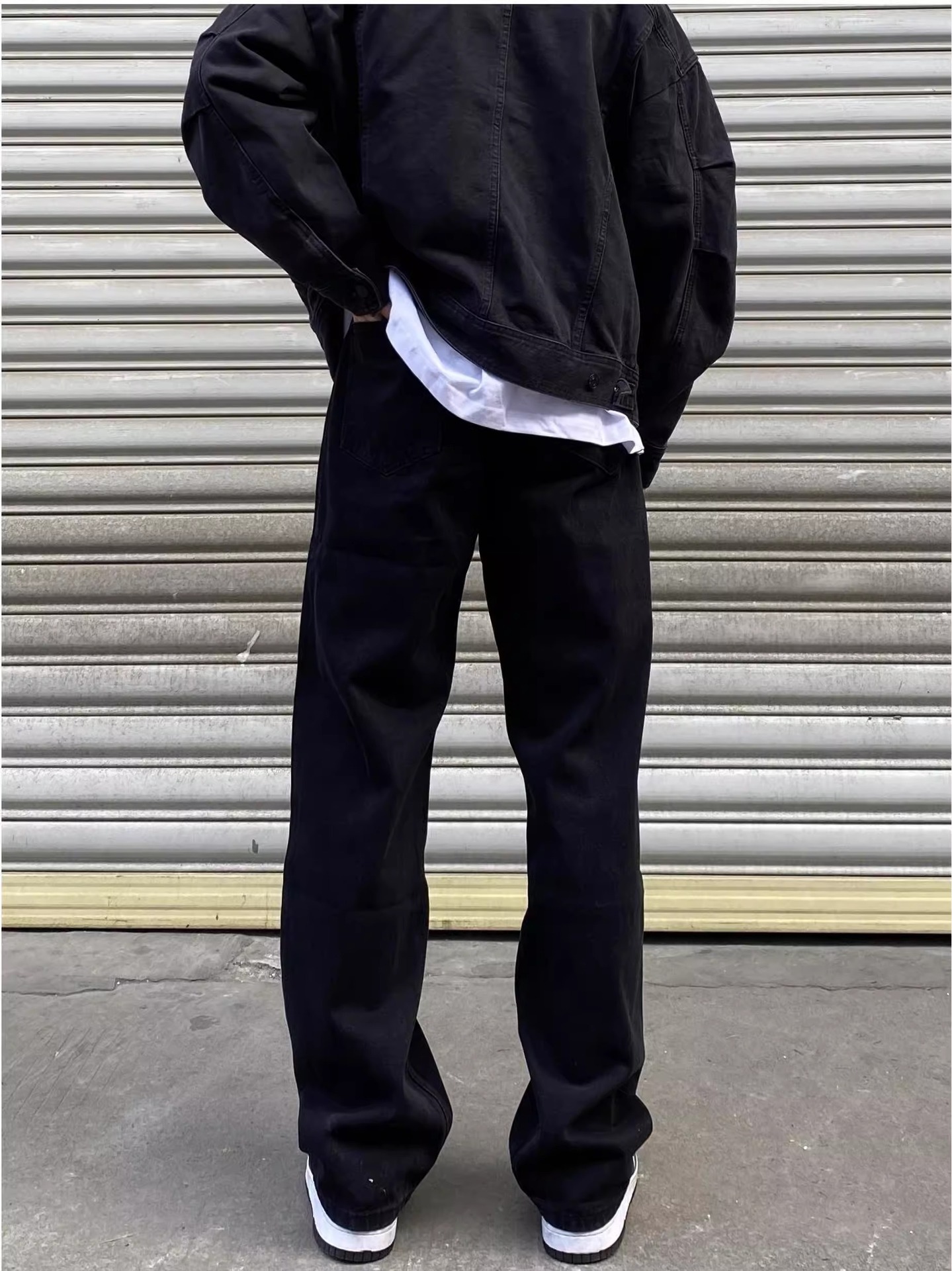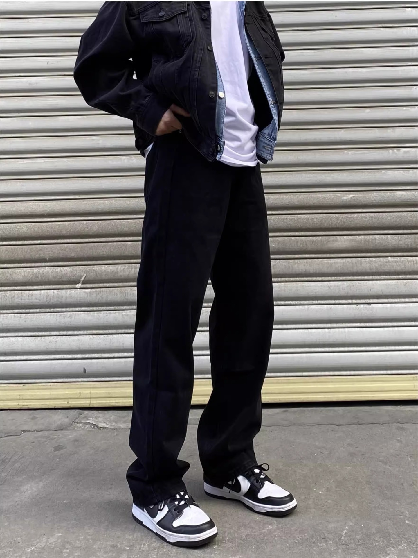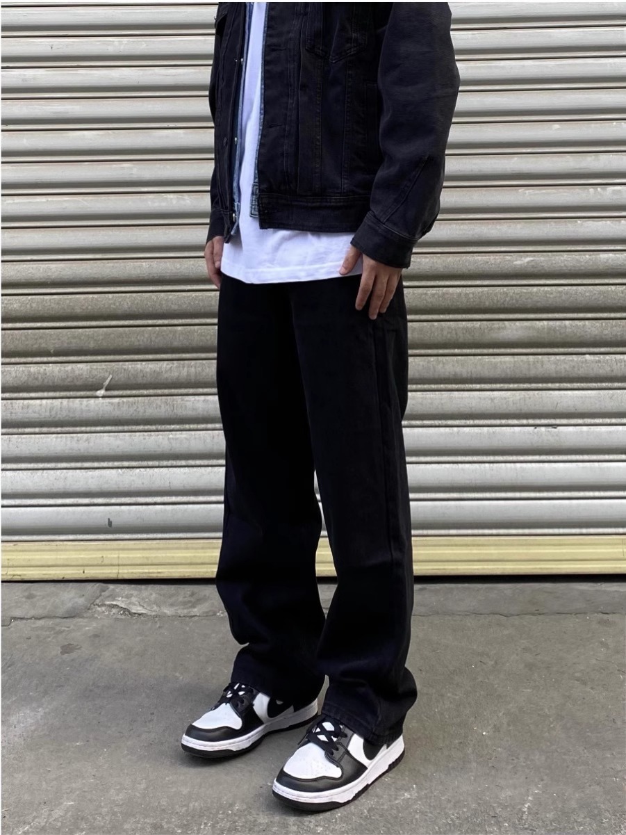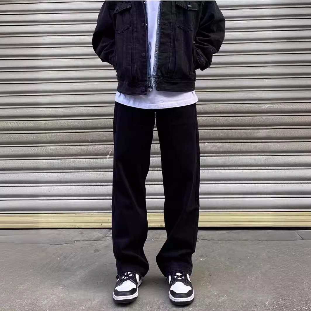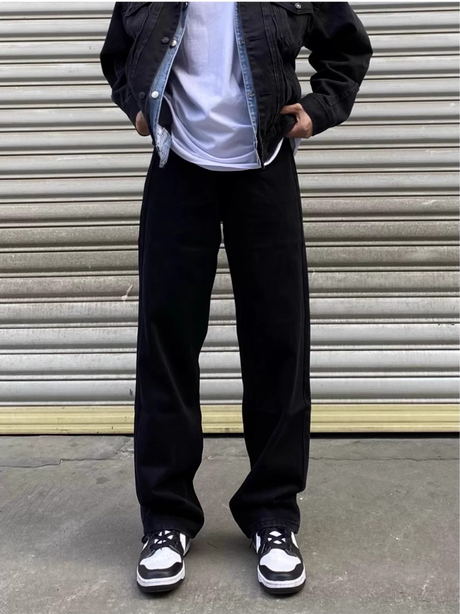 하이 스트리트 블랙 청바지 남자 느슨한 올 매치 화이트 와이드 레그 팬츠 레트로 슬리밍 캐주얼 롱 팬츠스토어 가기