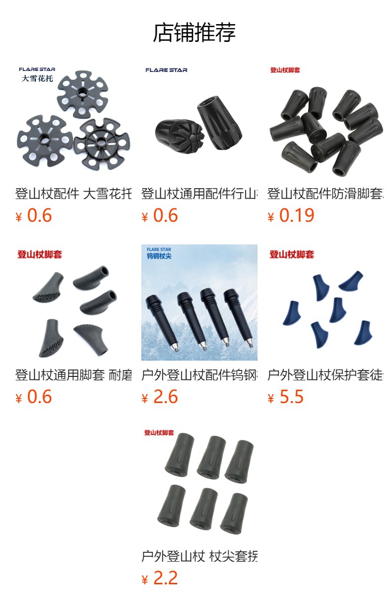 宝贝作用:增大登山杖与地面的摩擦,减少磨损,能有 效的保护杖尖,避免杖尖伤人,延长手杖的使用寿命