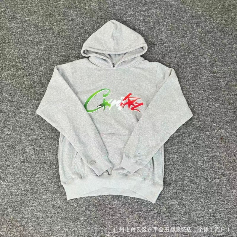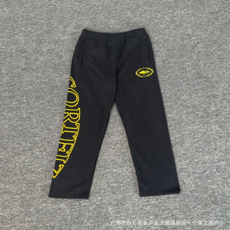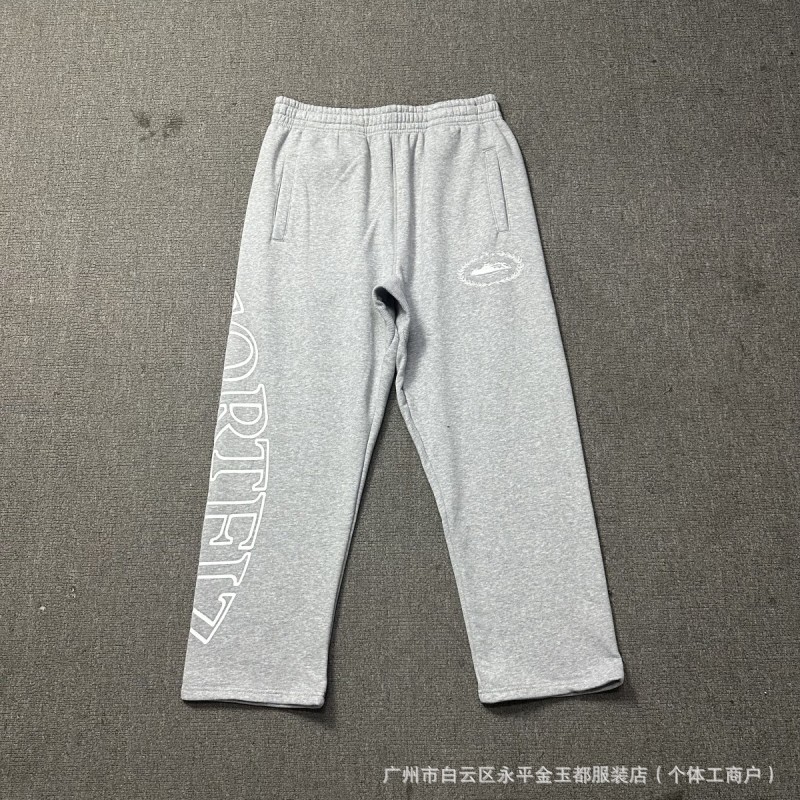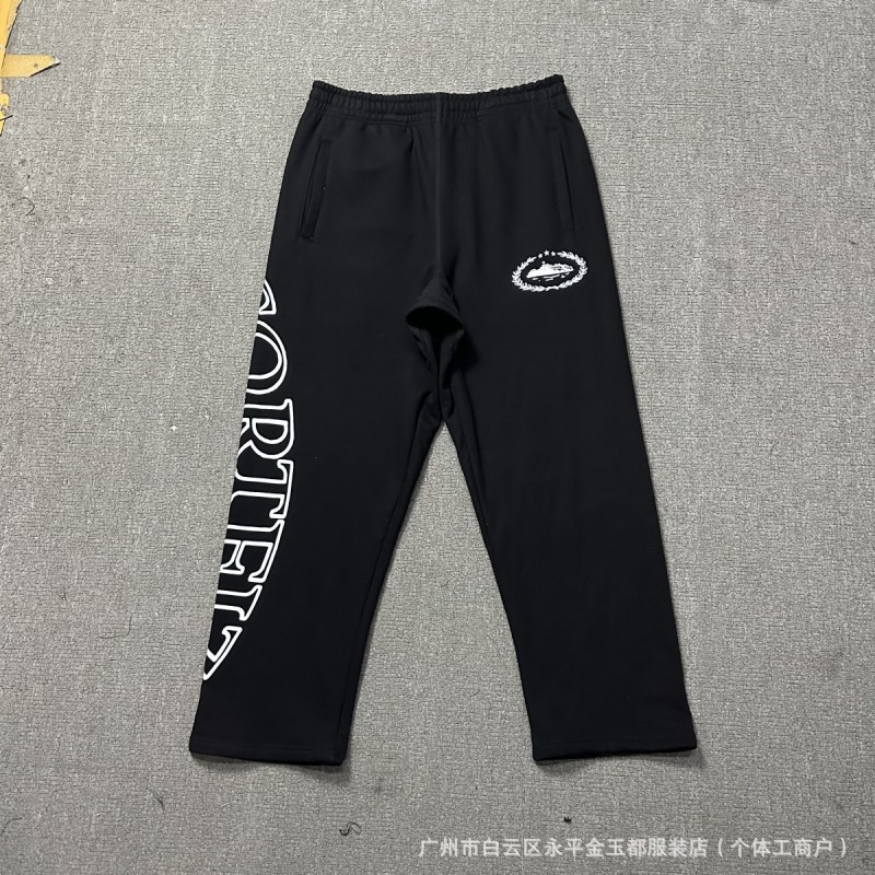 국경을 넘나드는 트렌디한 브랜드의 새로운 자수 문자 힙합 벨벳 풀오버 후드 스웨트셔츠와 스웨트팬츠 하이 스트리트 루즈 캐주얼 슈트스토어 가기