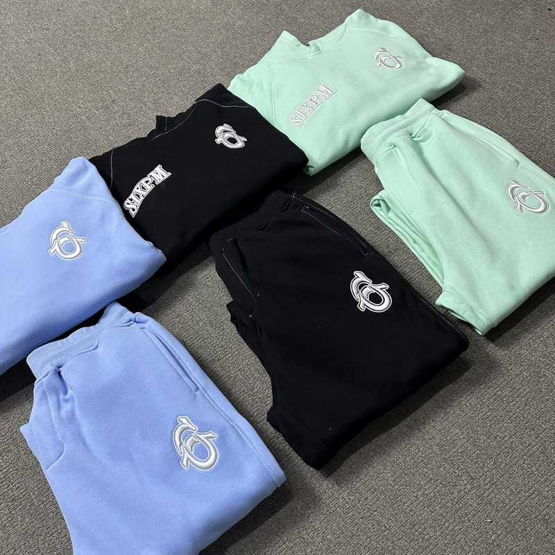 국경을 넘나드는 트렌디한 브랜드의 새로운 자수 문자 힙합 벨벳 풀오버 후드 스웨트셔츠와 스웨트팬츠 하이 스트리트 루즈 캐주얼 슈트
