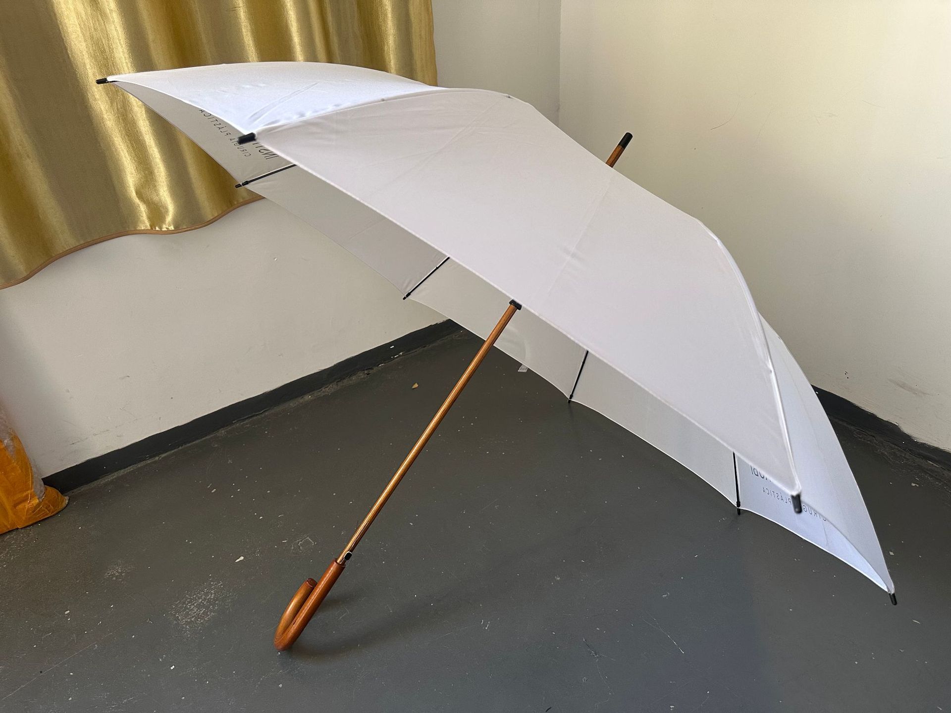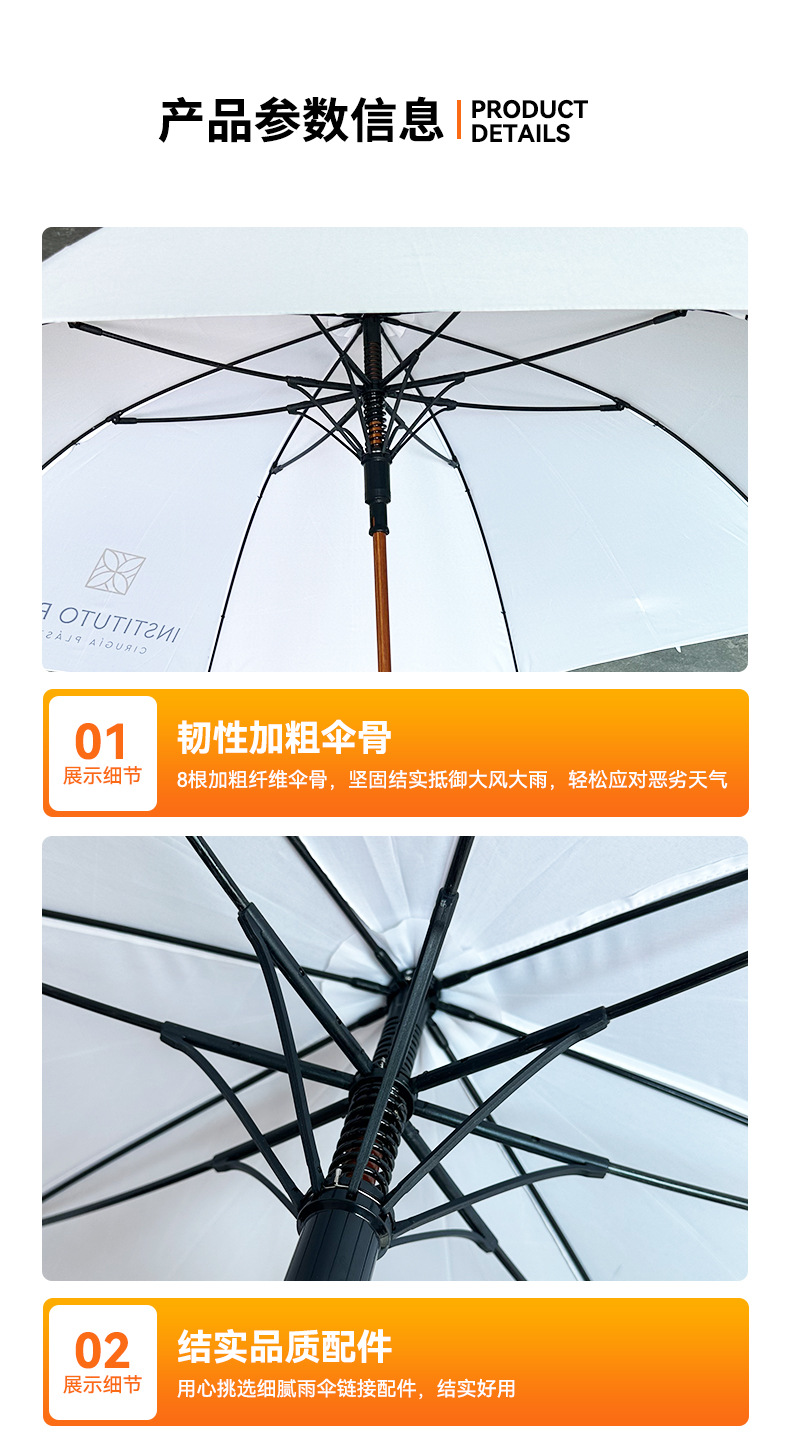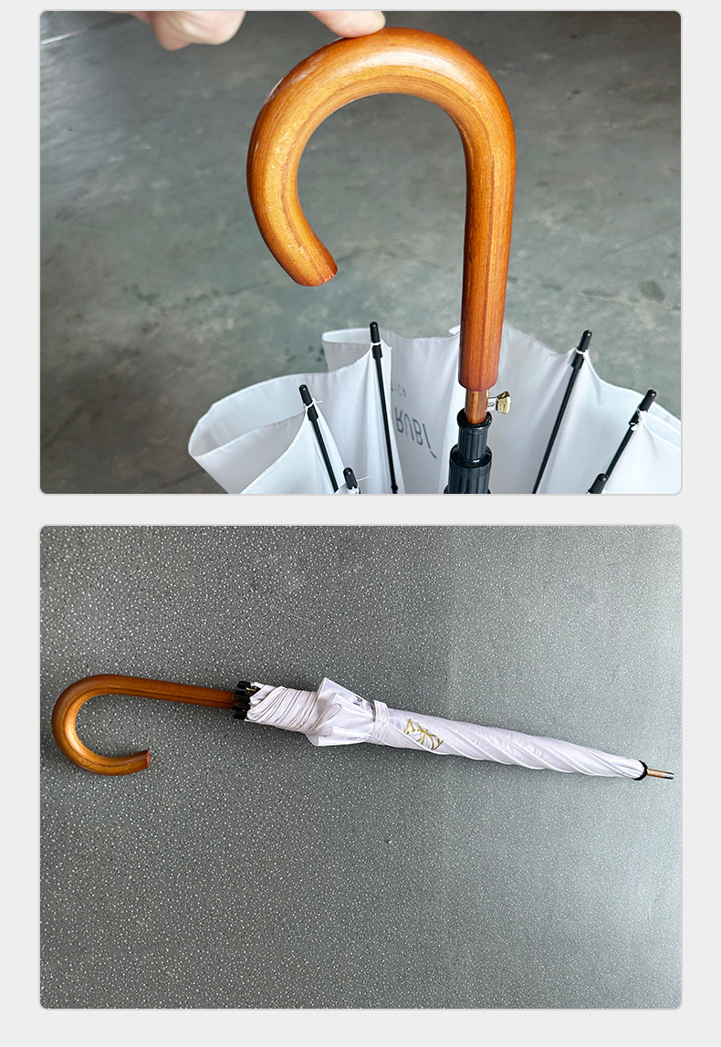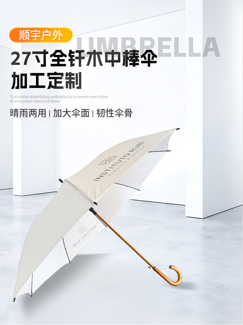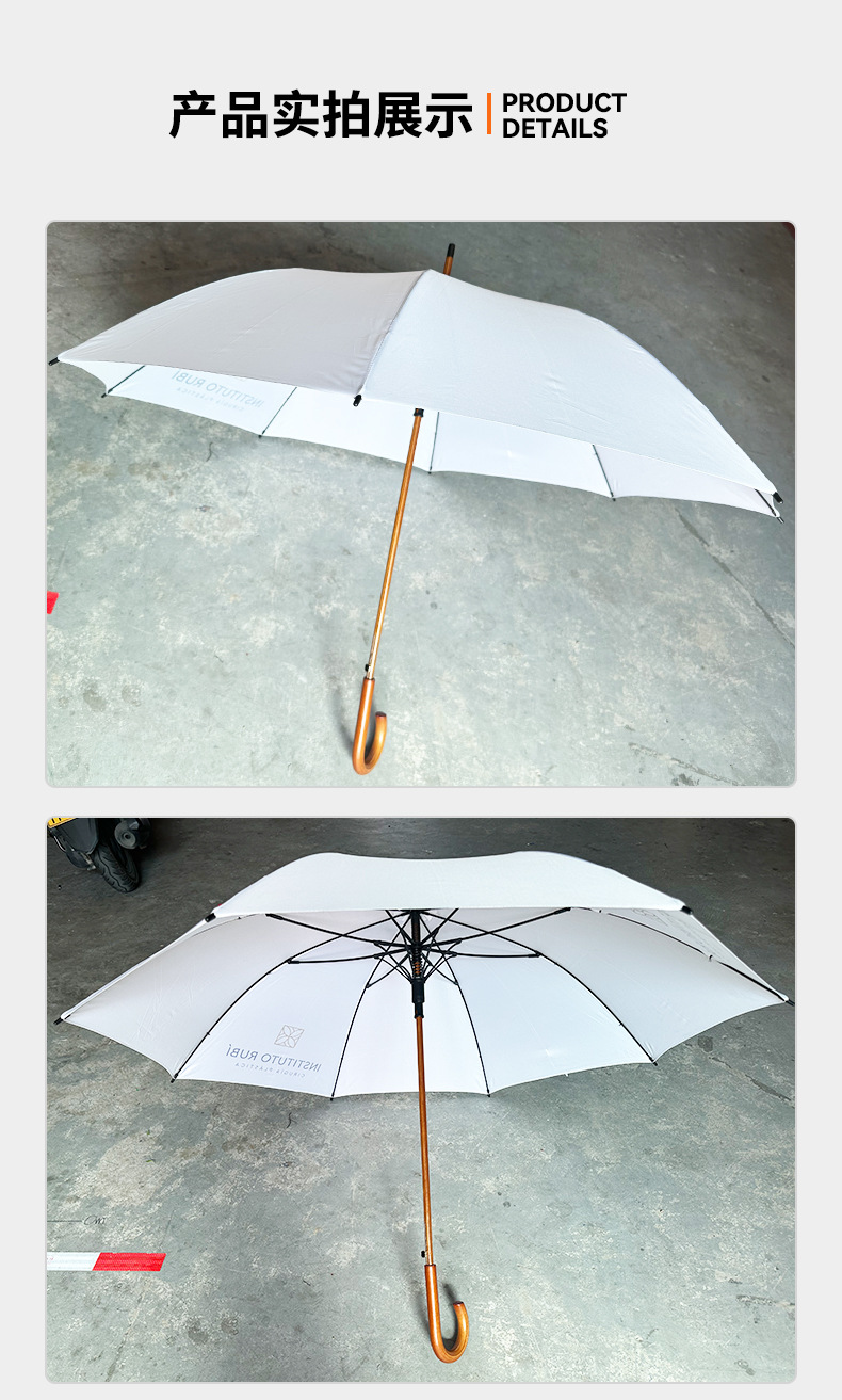 엄선된 직선 우산, 긴 우산, 비즈니스 우산, 자동 우산, 나무 중간 스틱, 나무 손잡이, 햇볕이 잘 드는 우산, 광고 인쇄 로고, 자외선 차단제