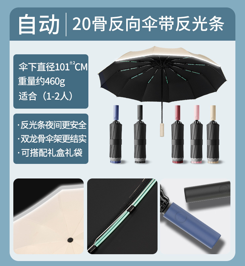 많은 수의 도매 접이식 비와 빛나는 이중 사용 비닐 차양 증가 자동 우산 맞춤형 광고 인쇄 로고 패턴스토어 가기