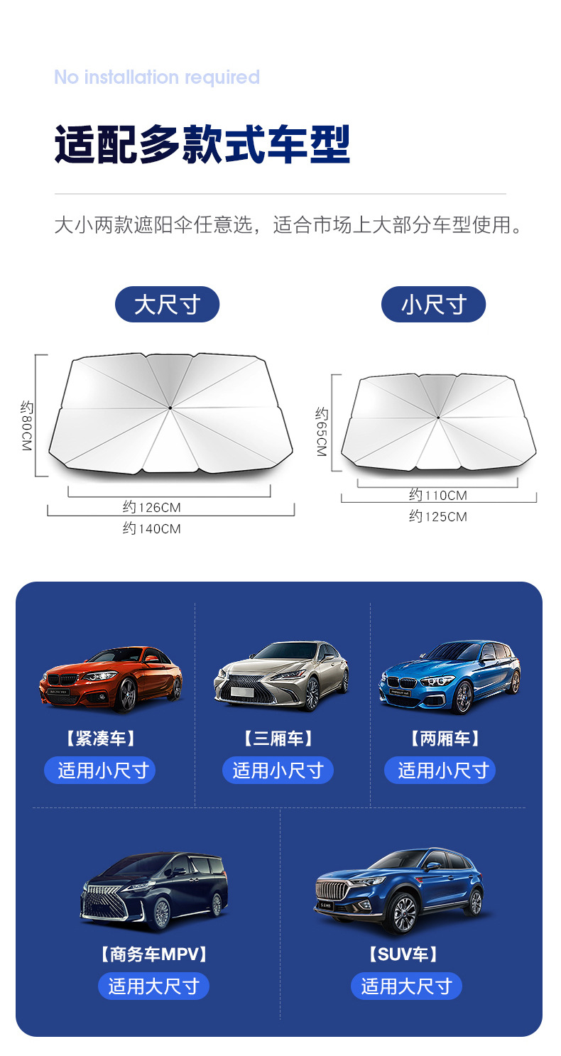 特斯拉遮阳挡:140*75cm,约400g,皮套包装