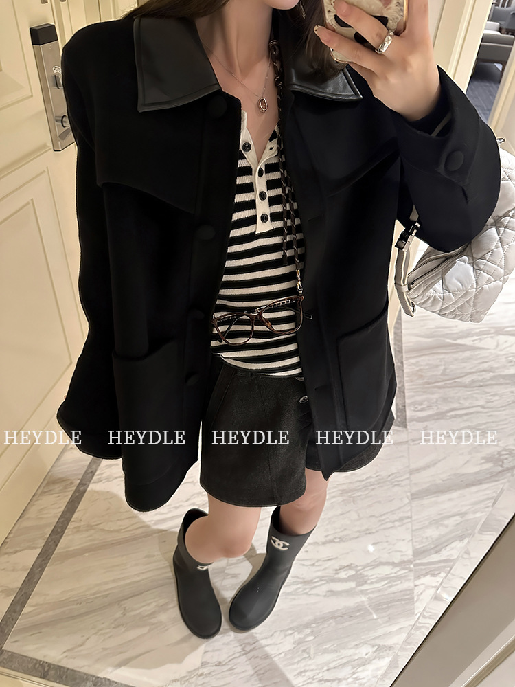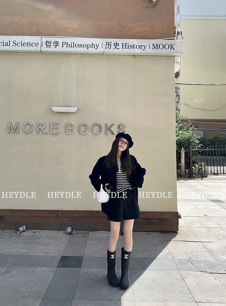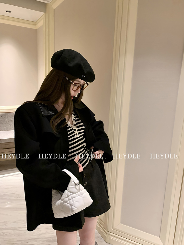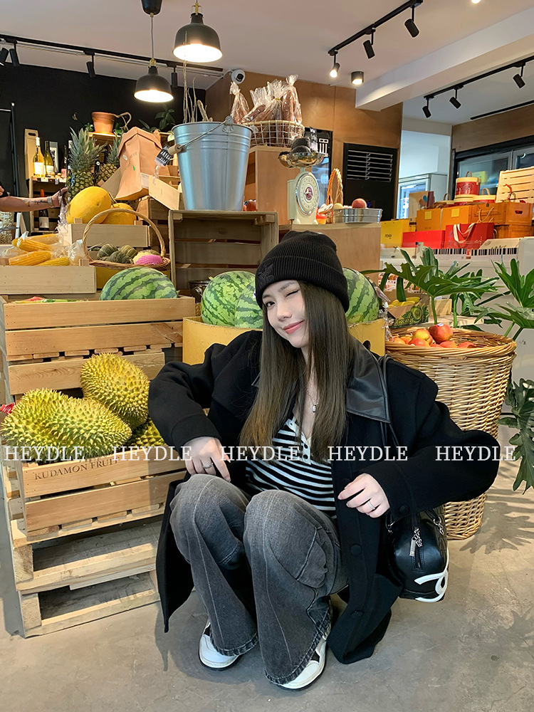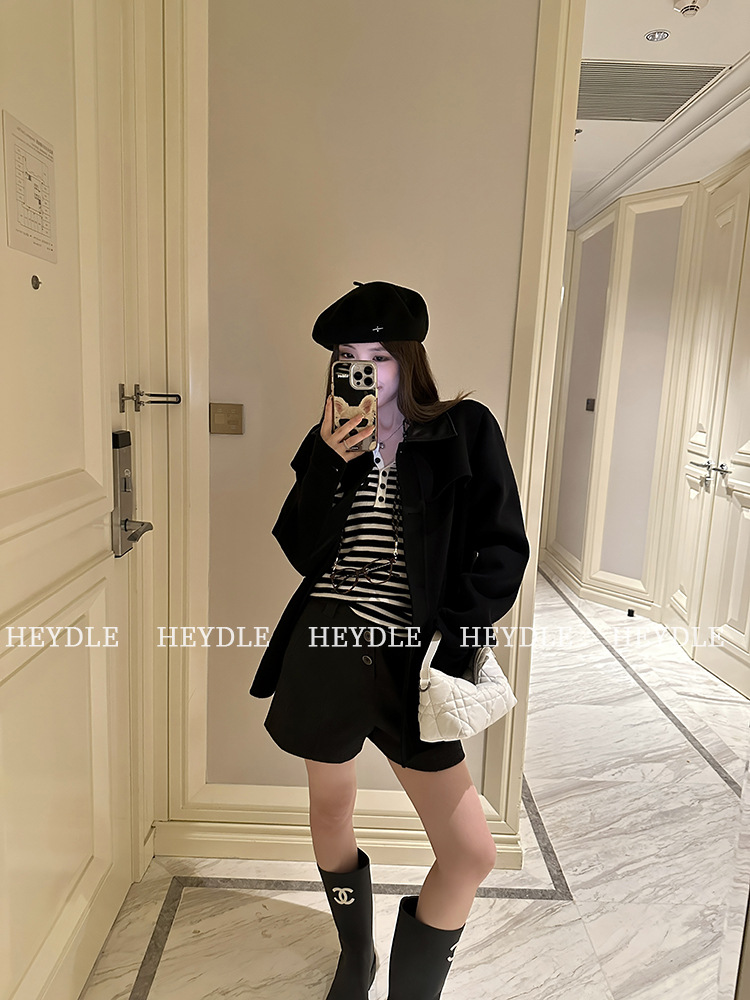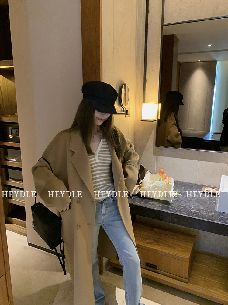 Jiuyue Wu 근무일 오후 * 줄무늬 V 넥 니트 셔츠 여자 가을 올 매치 긴 소매 하프 오픈 칼라 티셔츠 탑