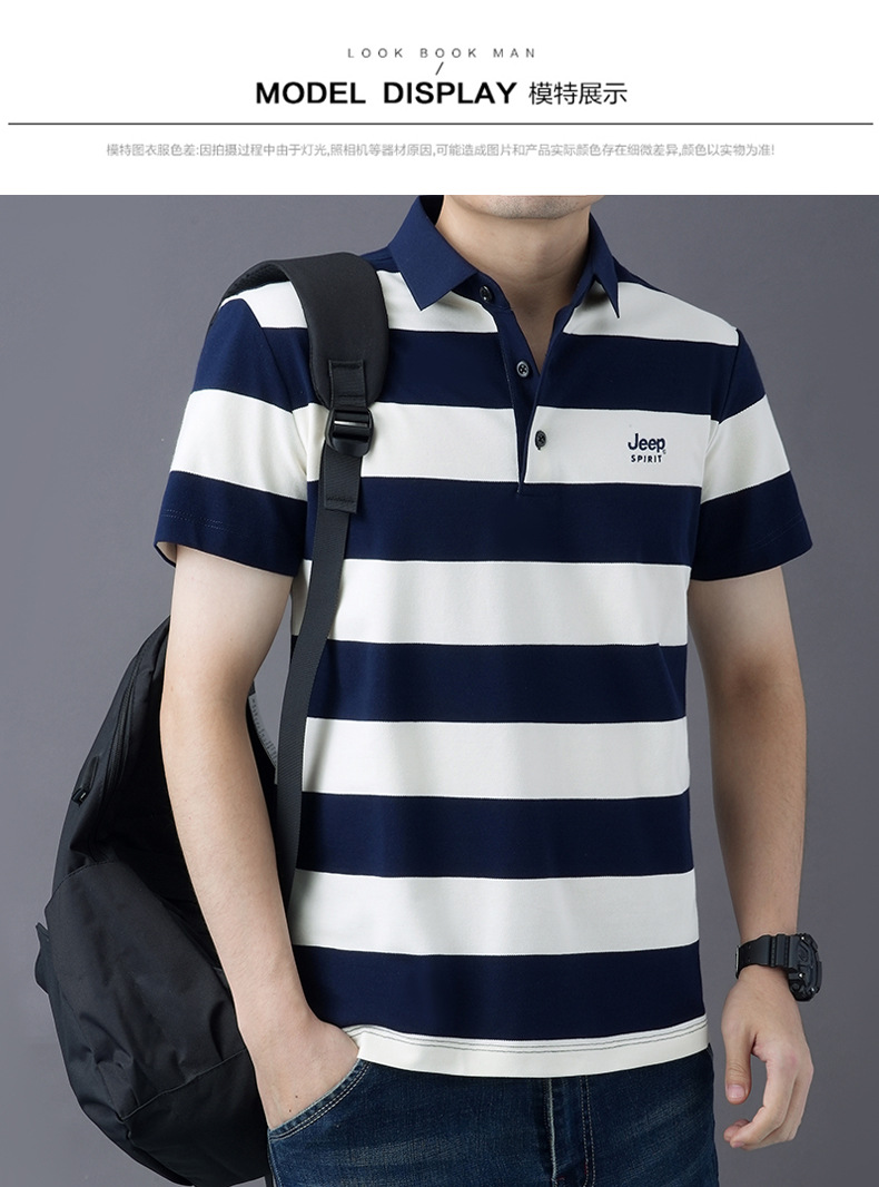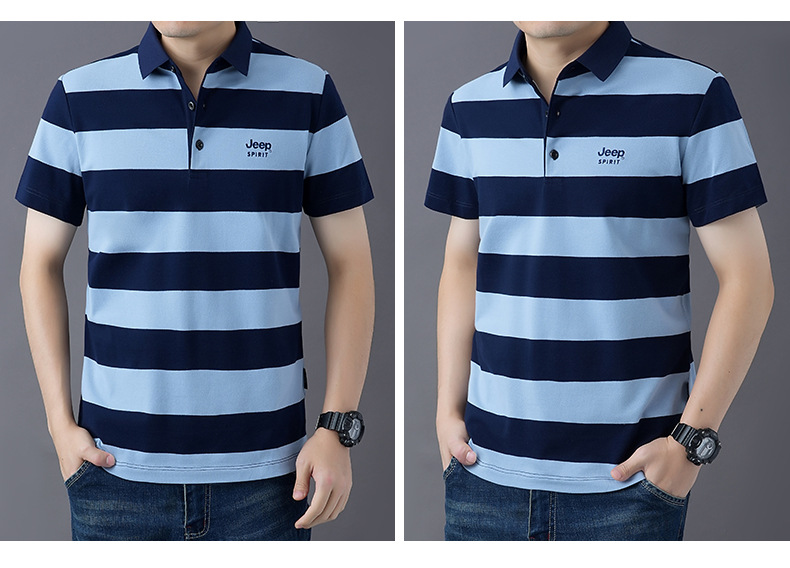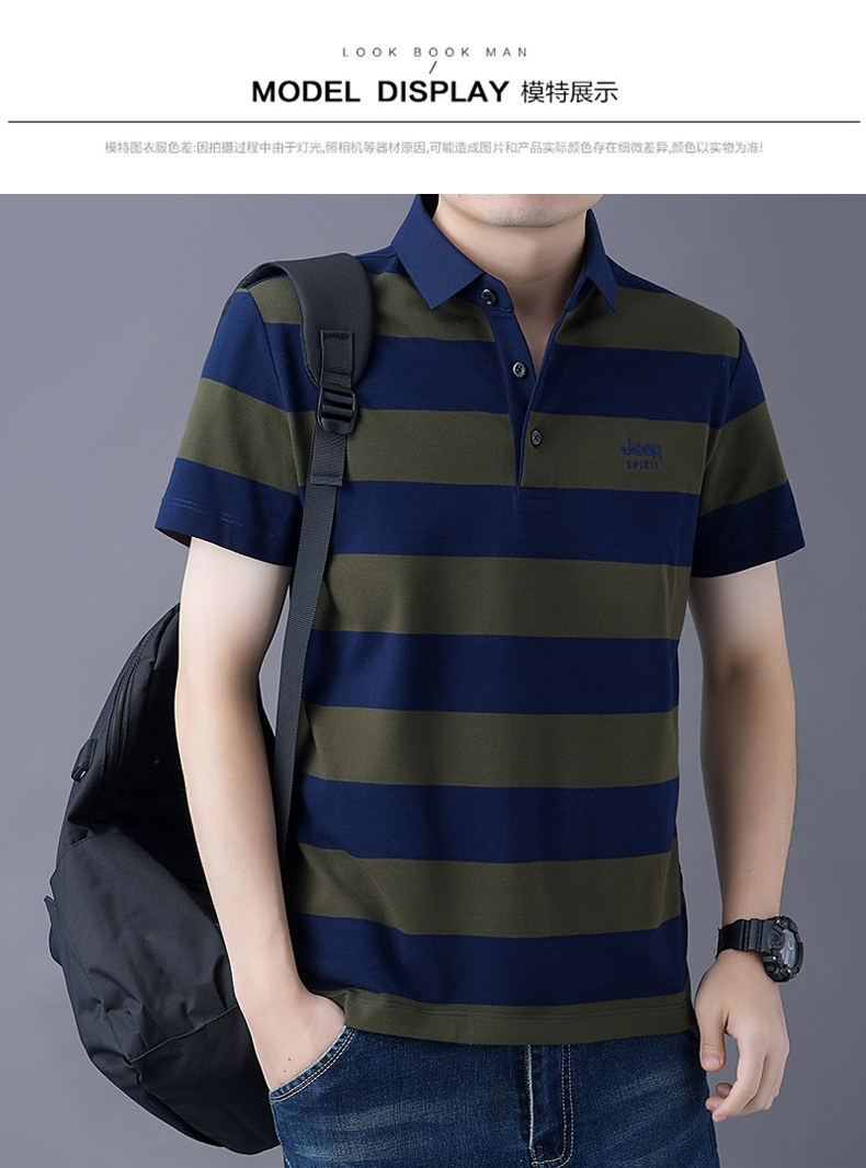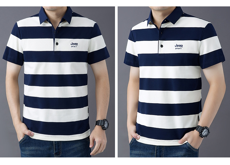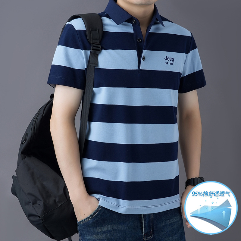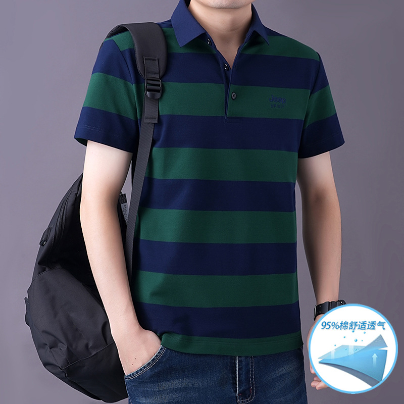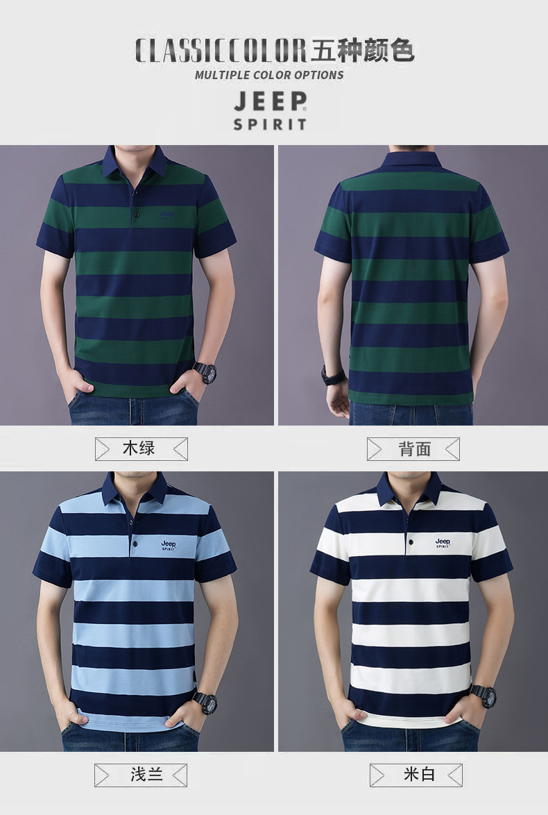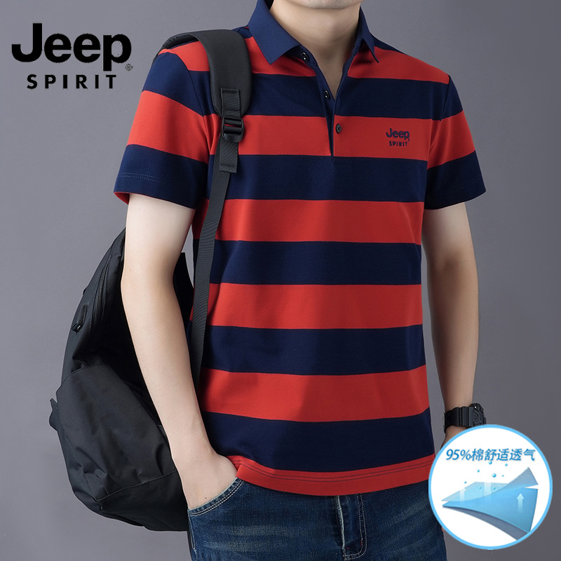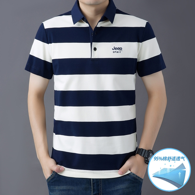 JEEPSPIRIT 남성 반팔 티셔츠 여름 줄무늬 옷깃 플러스 사이즈 비즈니스 캐주얼 폴로 셔츠 2030스토어 가기