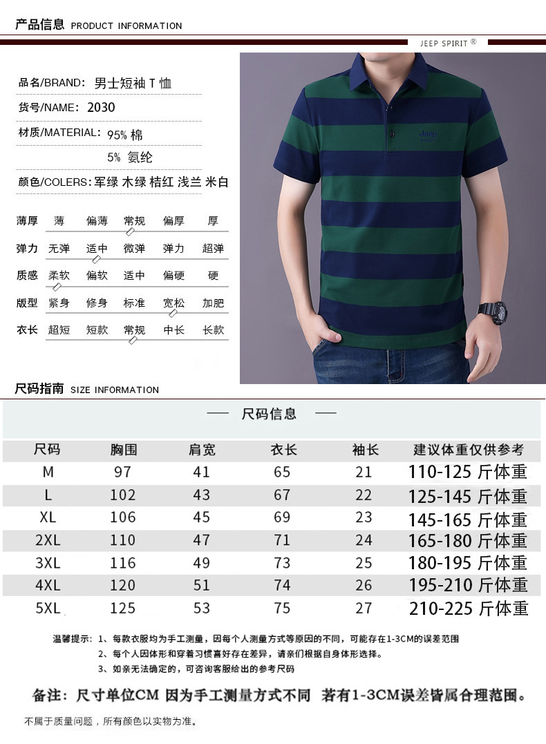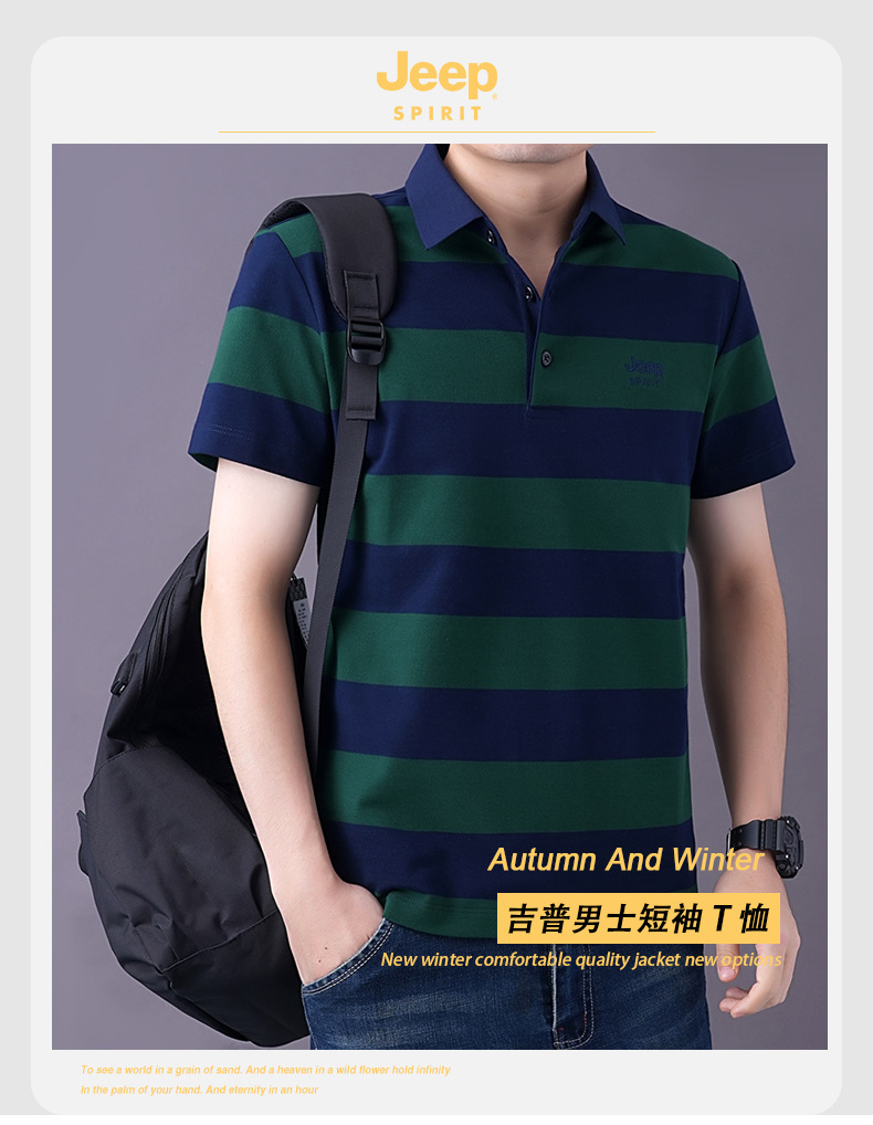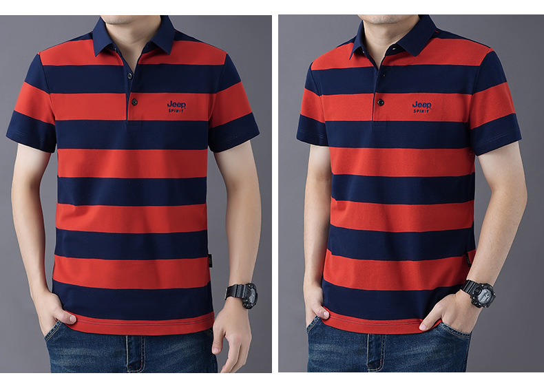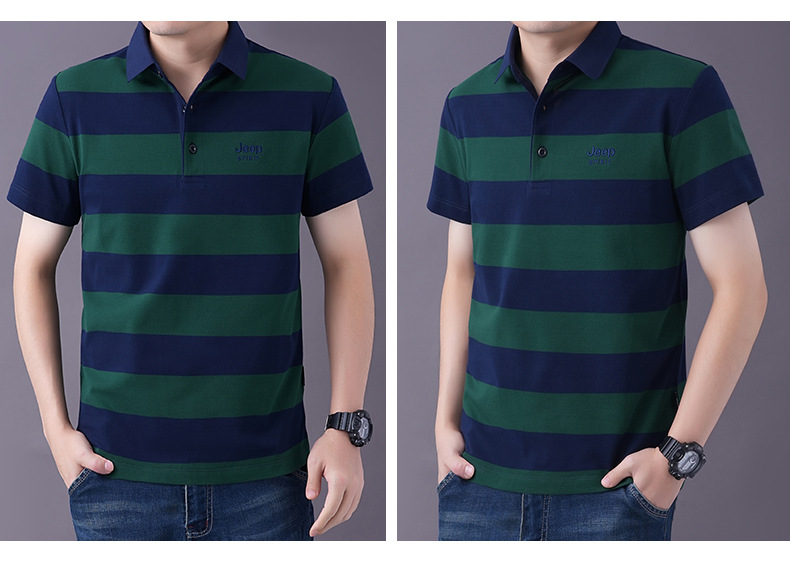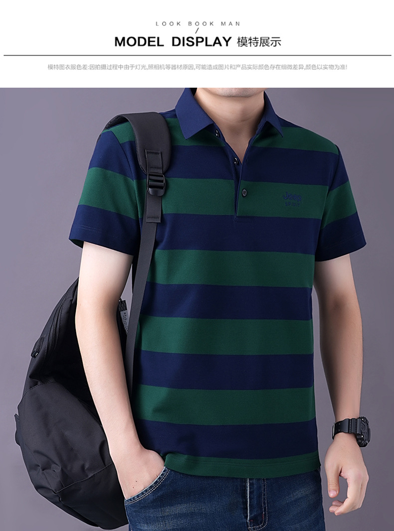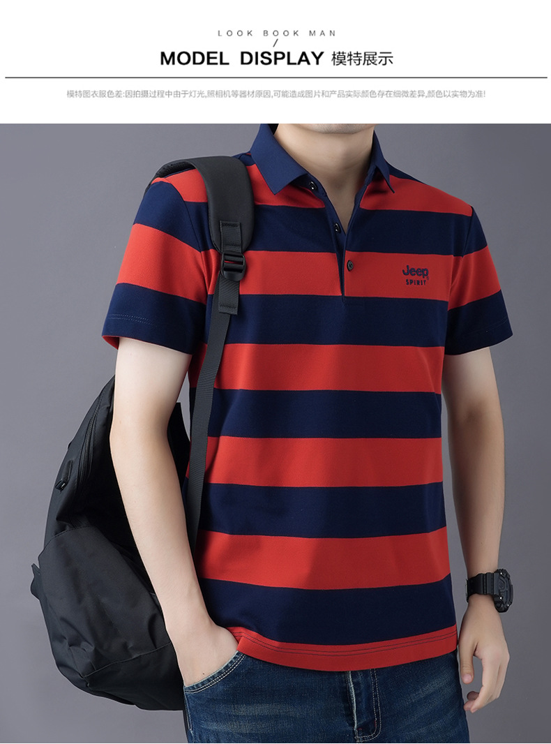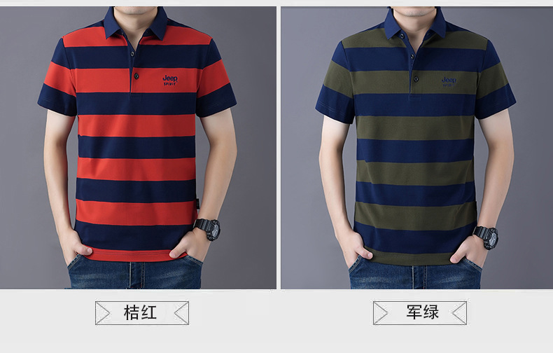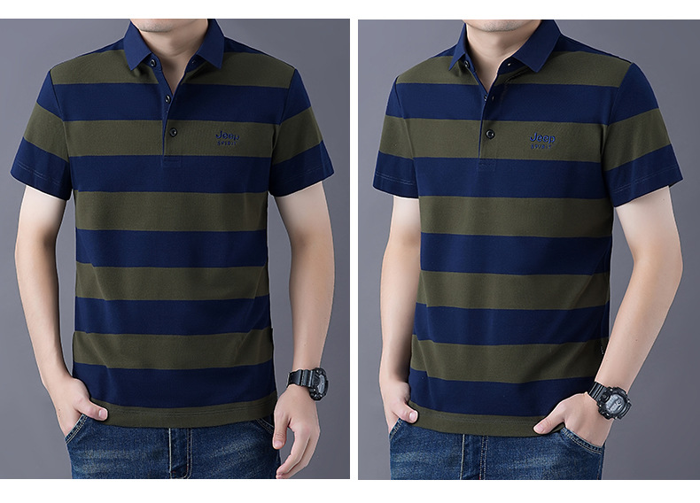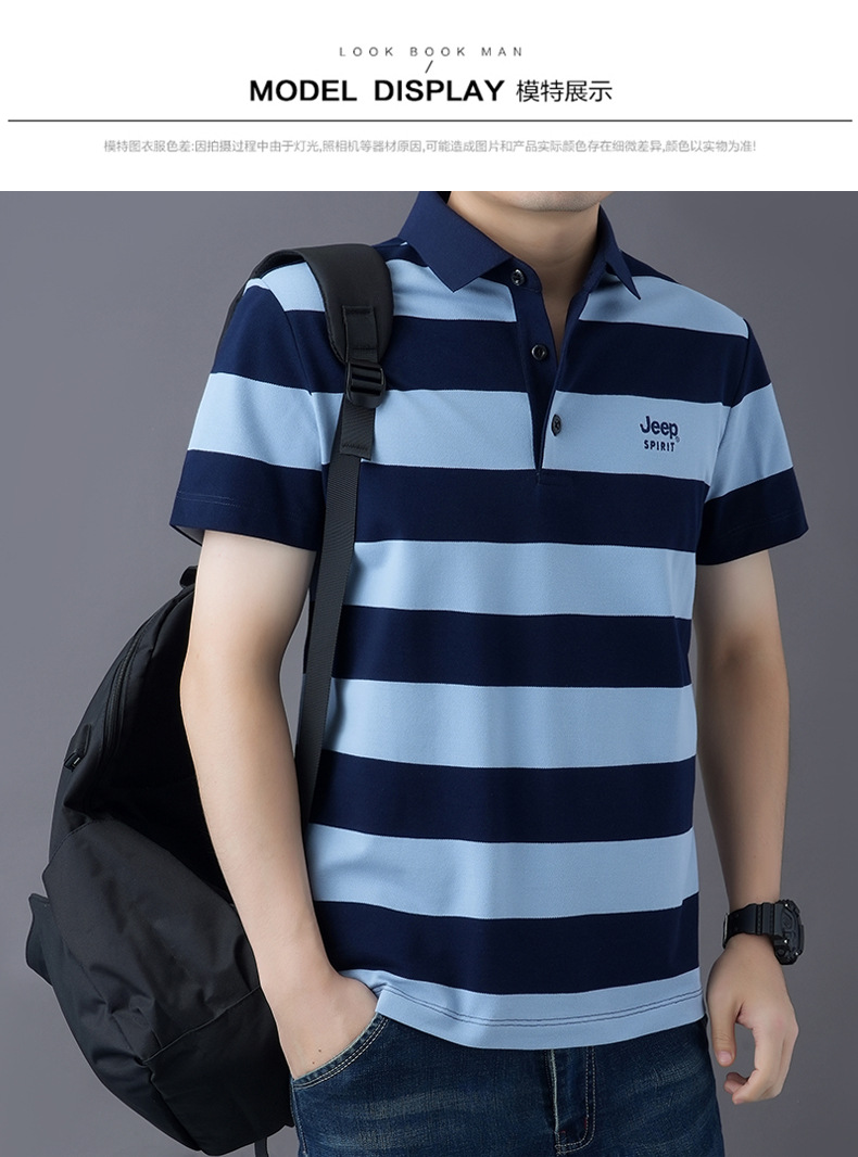 JEEPSPIRIT 남성 반팔 티셔츠 여름 줄무늬 옷깃 플러스 사이즈 비즈니스 캐주얼 폴로 셔츠 2030스토어 가기