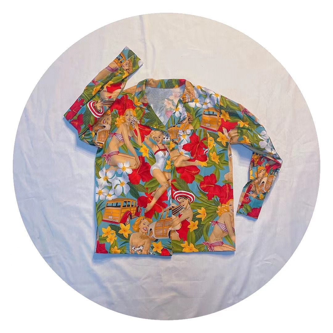 홍콩 스타일 레트로 8090 년대 돼지 꽃 셔츠 대형 중형 작은 소년 소녀 플러스 사이즈 여성 공연 댄스 의상스토어 가기