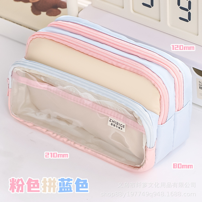 컬러 블록 연필 케이스 투명 대용량 문구 가방 창조적 인 다기능 문구 가방 Ins 일본 스타일 높은 색상 가치 크리에이티브스토어 가기