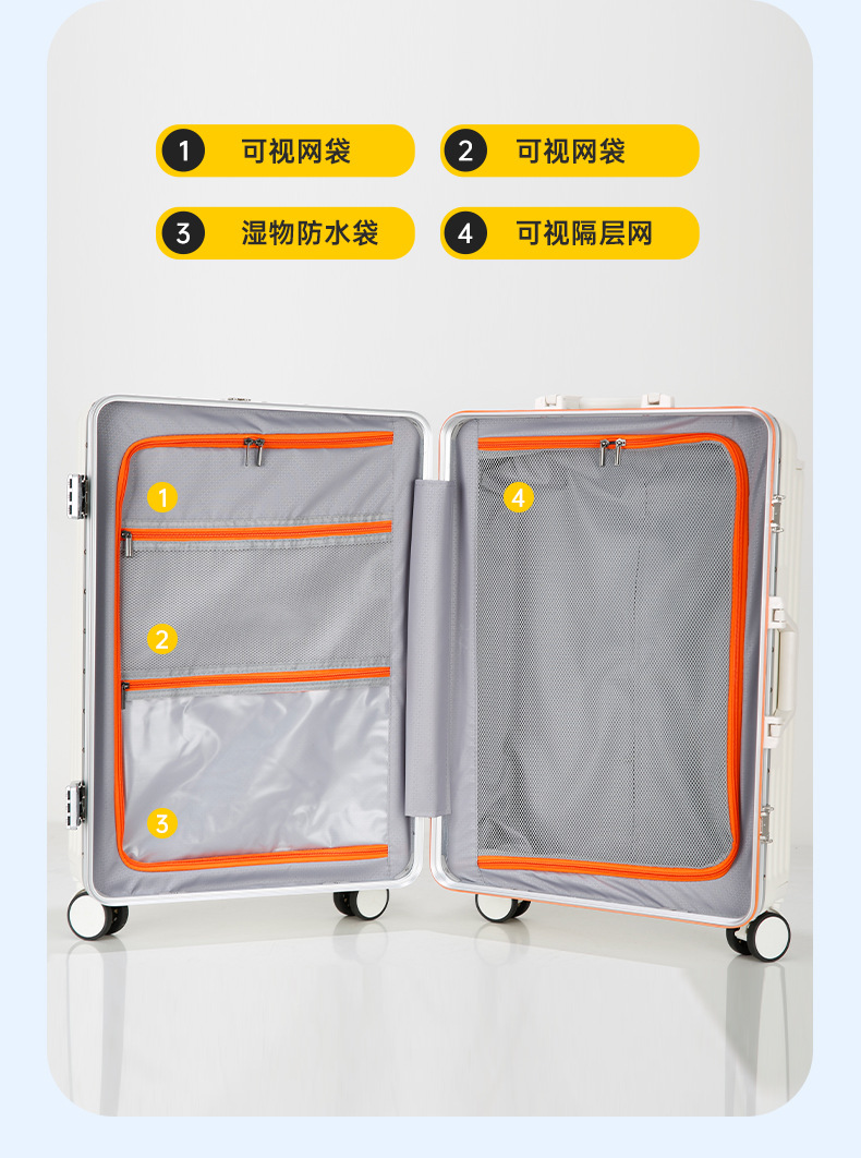 2025 새로운 알루미늄 프레임 여행 가방 남성용 고급 트롤리 케이스 여성의 높은 가치의 낙하 방지 와이드 트롤리 여행 가방 비밀번호 상자스토어 가기