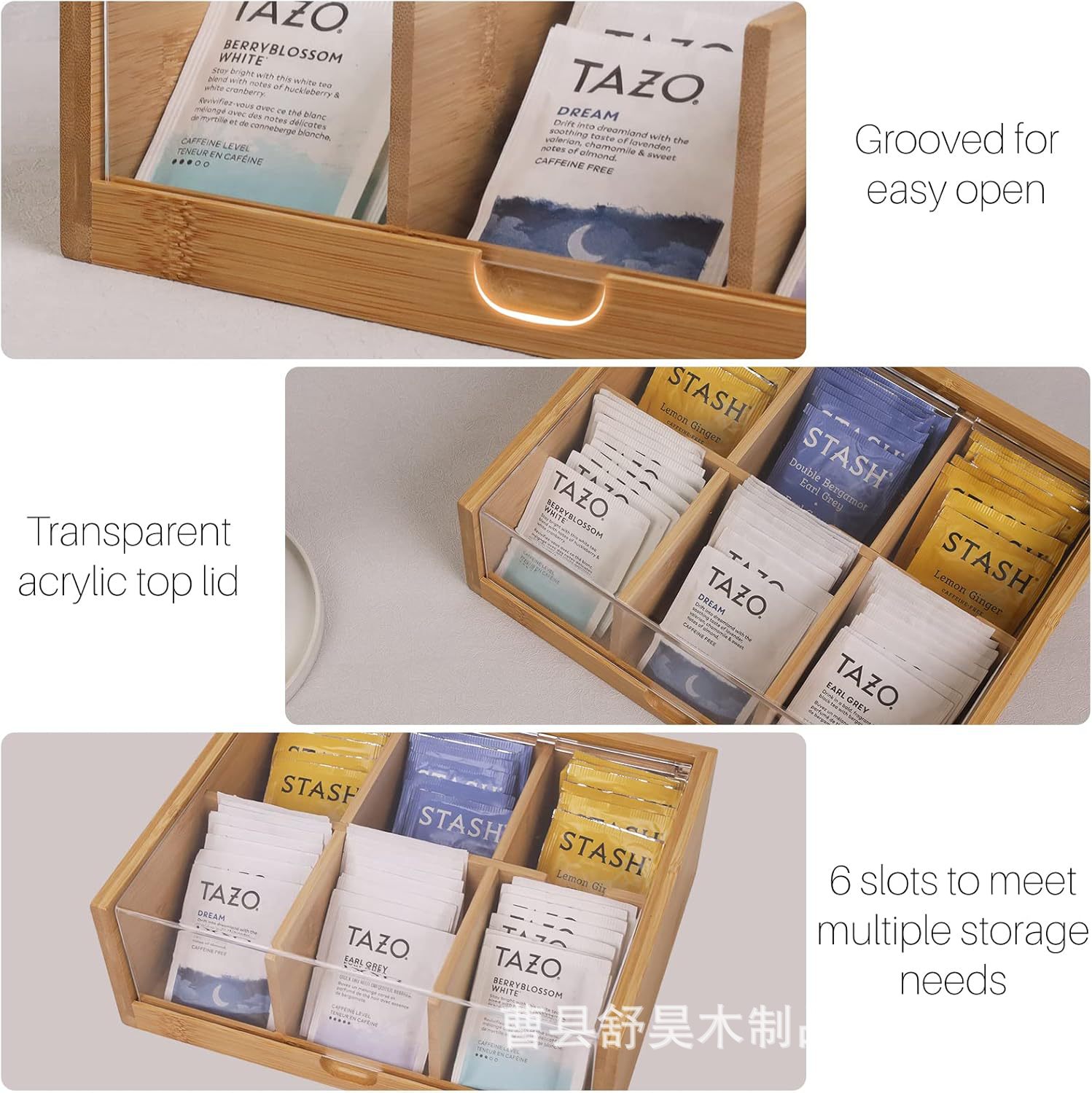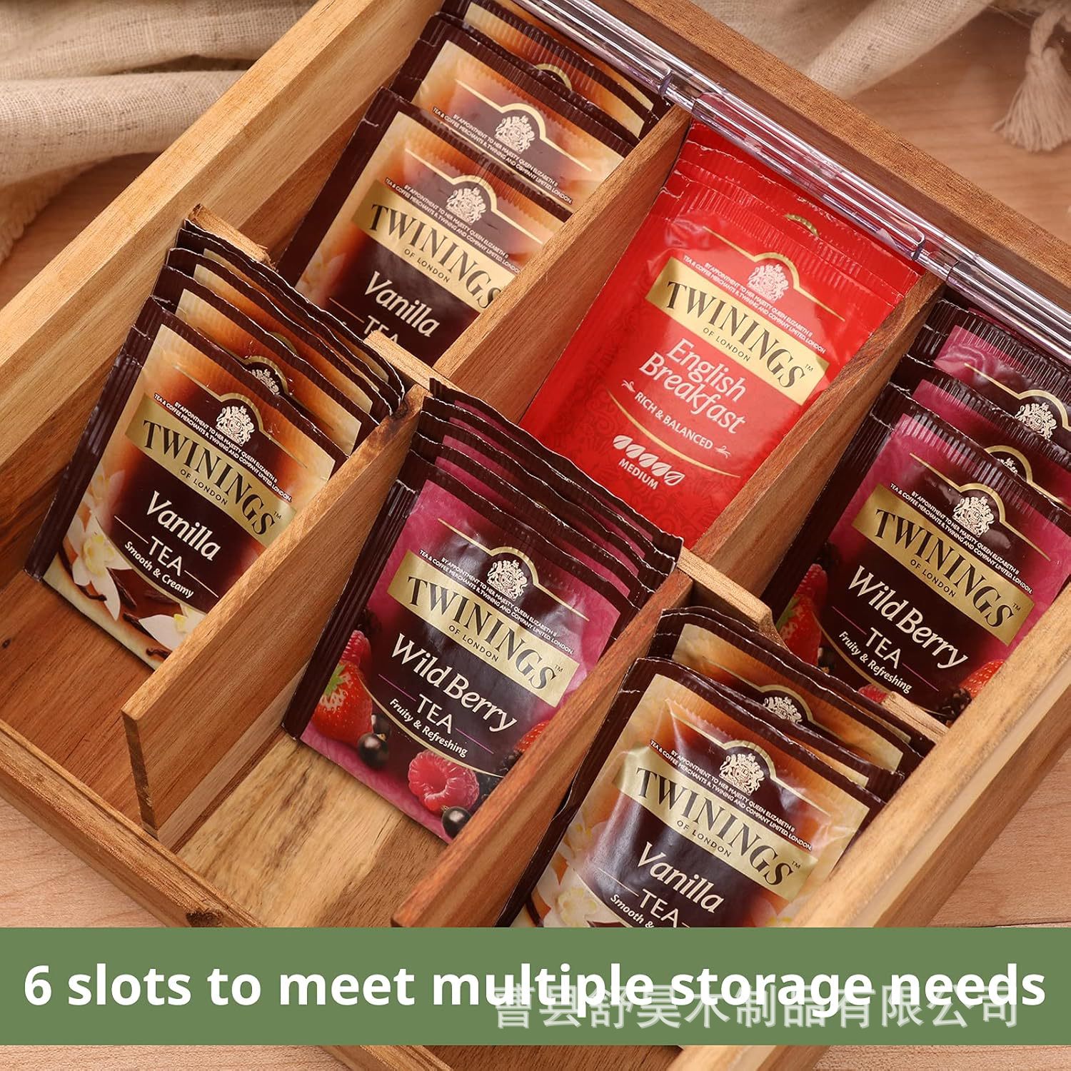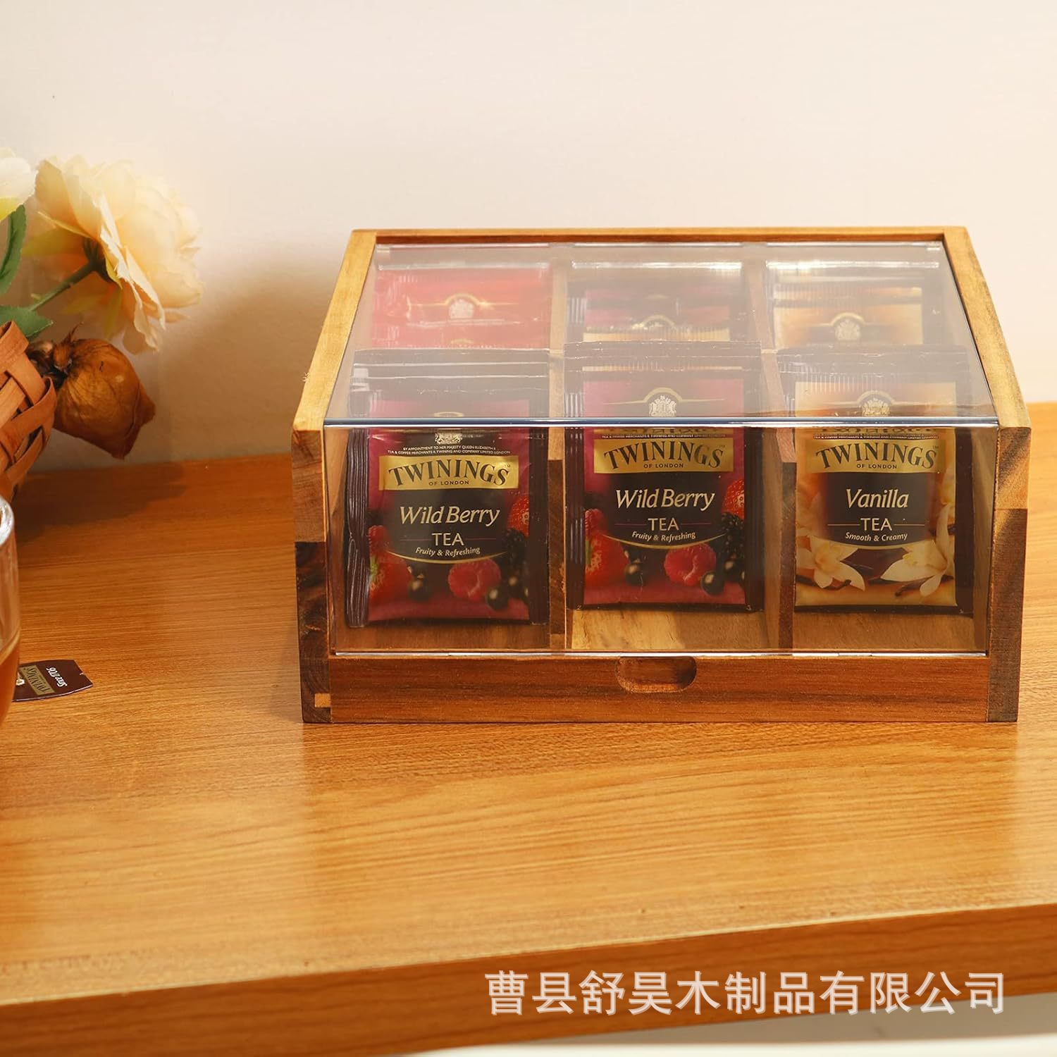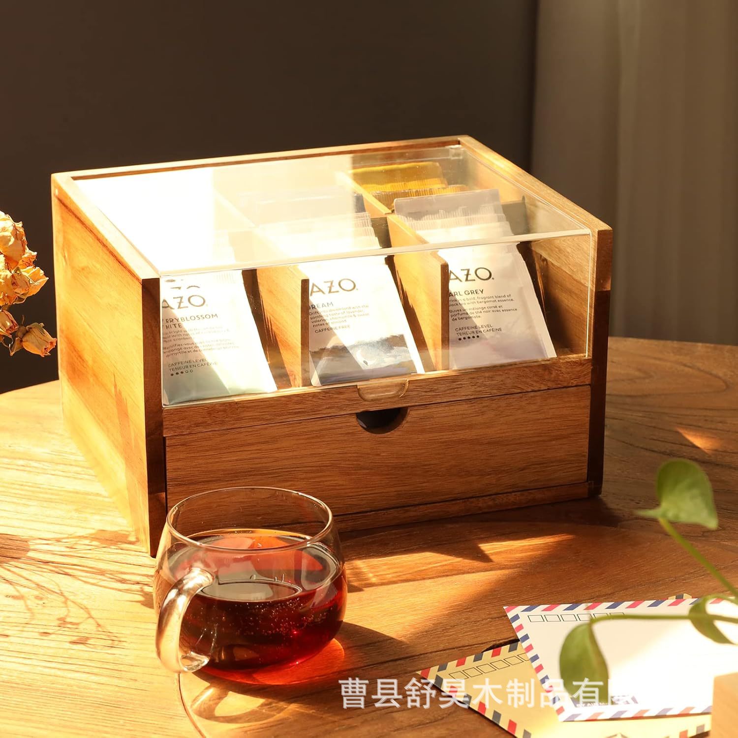 나무 커피백/차 포장 상자, 아크릴 뚜껑이 있는 원목 보관함, 포장된 티백 상자, 커피 보관함