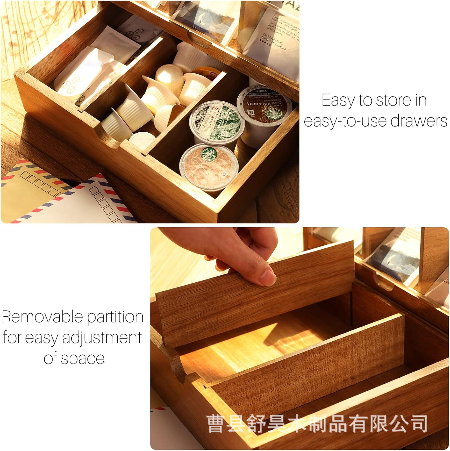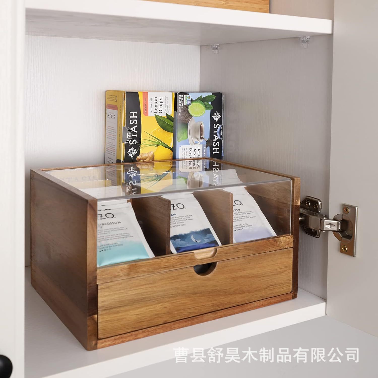 나무 커피백/차 포장 상자, 아크릴 뚜껑이 있는 원목 보관함, 포장된 티백 상자, 커피 보관함스토어 가기