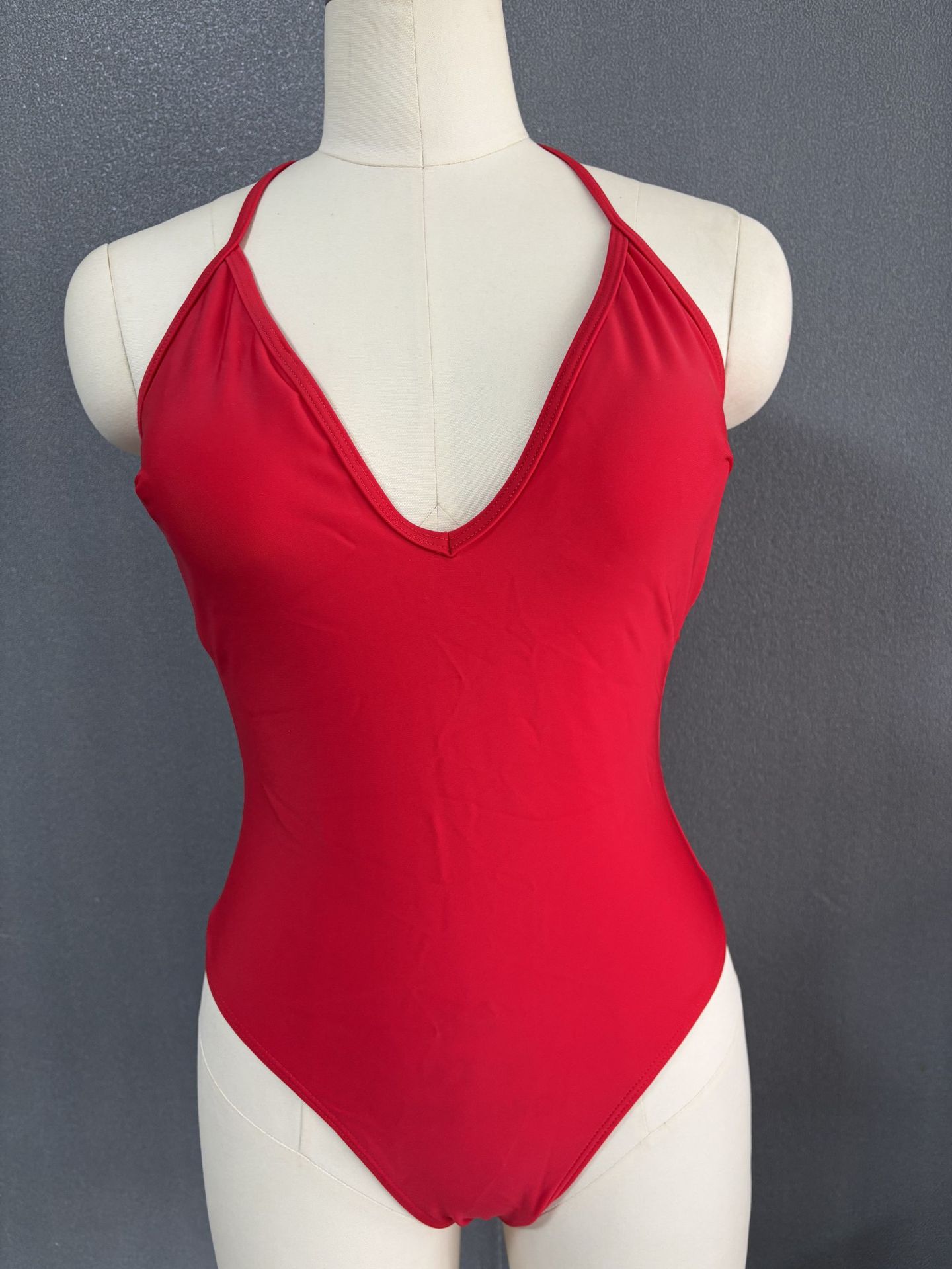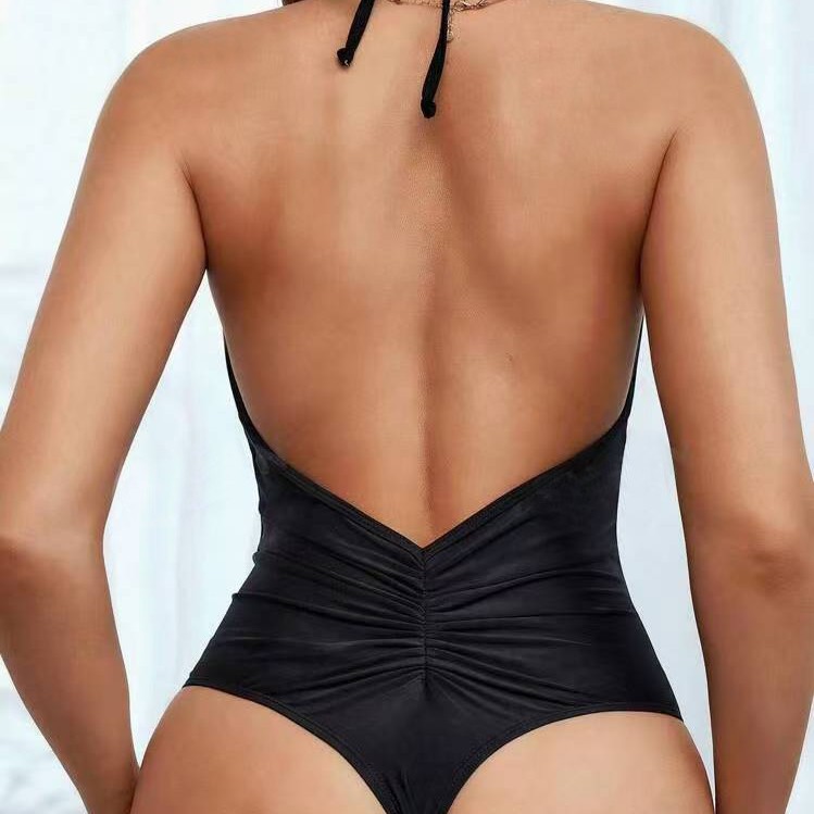 2025 새로운 유럽과 미국의 대외 무역 원피스 수영복 섹시한 단단한 단색 백리스 레이스 업 수영복 도매 JL2507