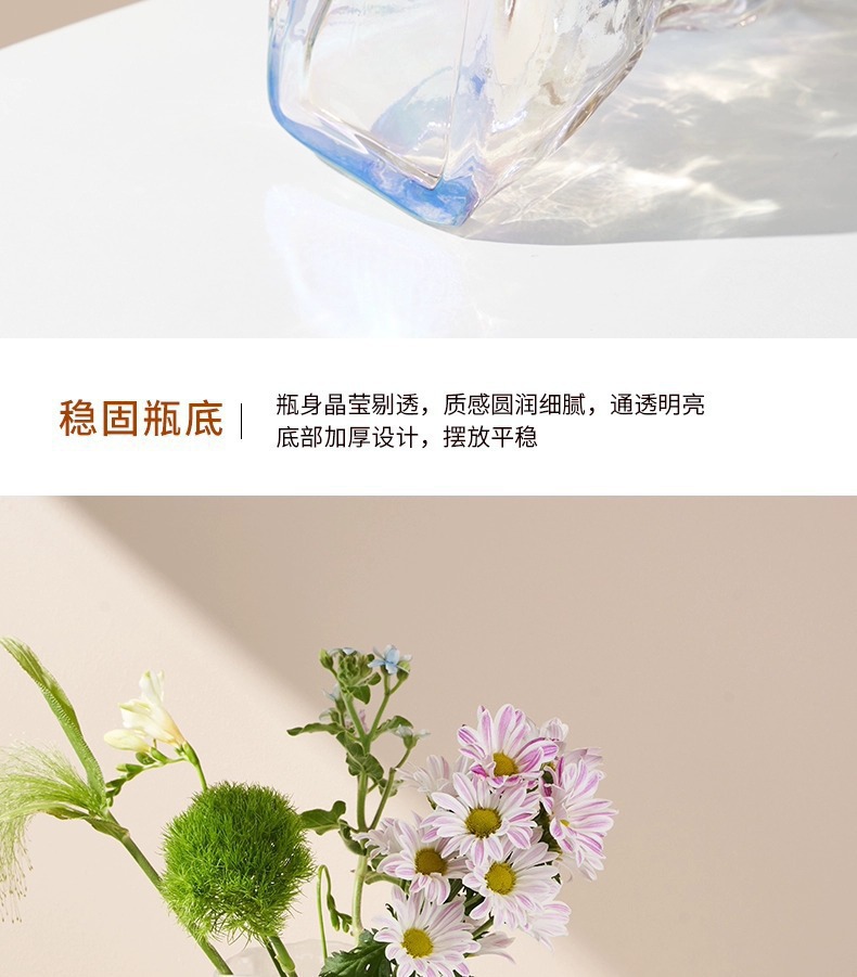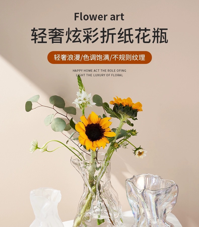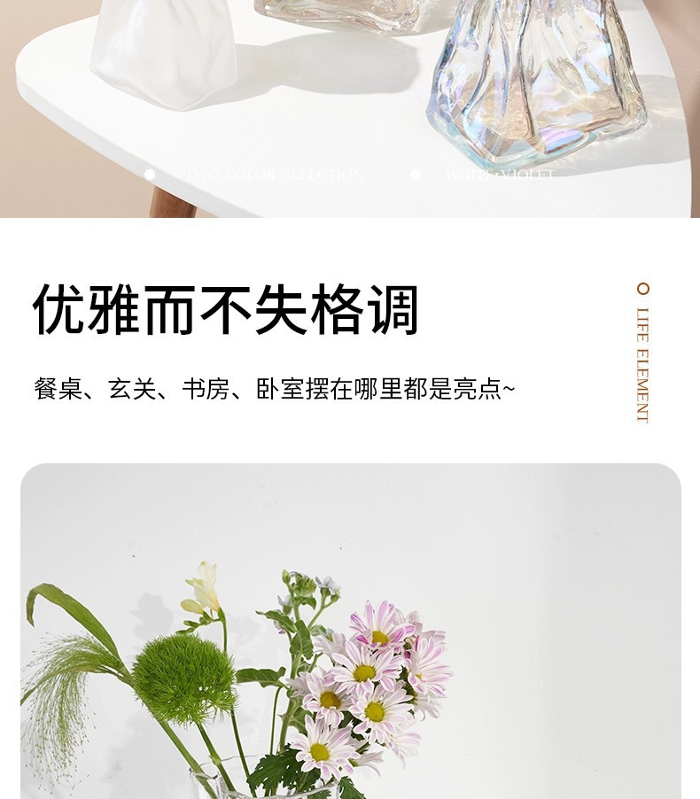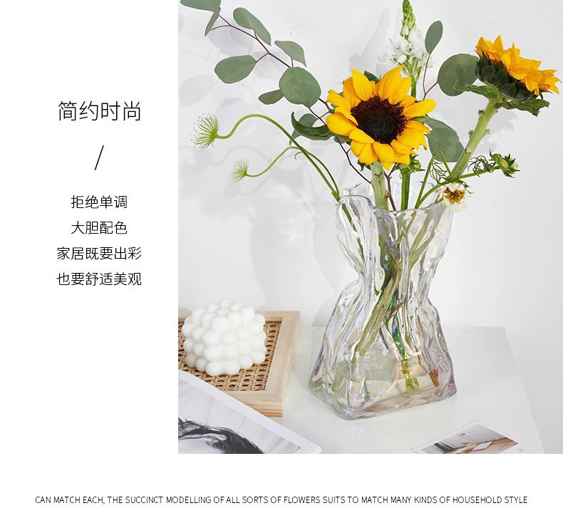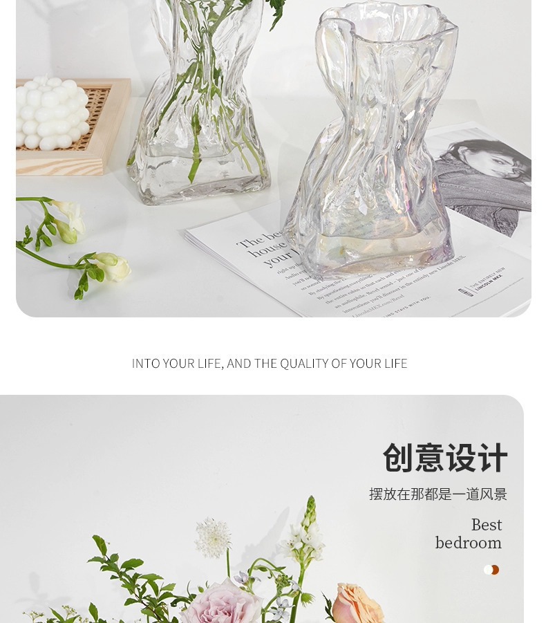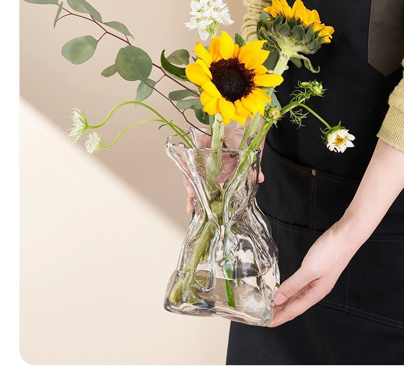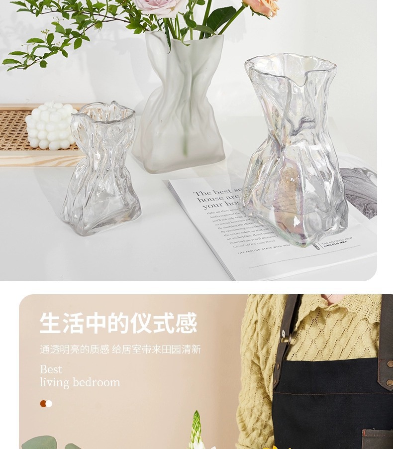 주름 디자인 포켓 유리 꽃병 스테레오 유럽식 프로스트 꽃병 수경 꽃 꽃병 거실 입구 장식품