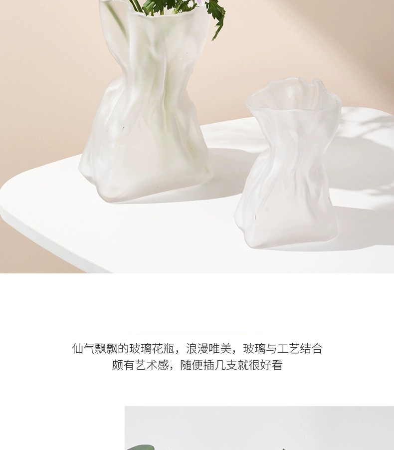 주름 디자인 포켓 유리 꽃병 스테레오 유럽식 프로스트 꽃병 수경 꽃 꽃병 거실 입구 장식품스토어 가기