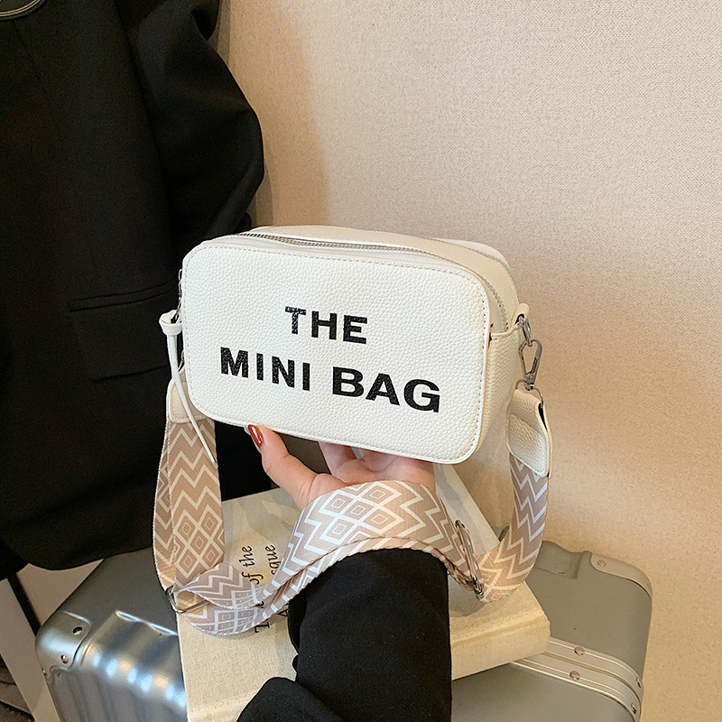 한국 스타일 더블 풀 콘트라스트 컬러 와이드 숄더 스트랩 텍스트 인쇄 편지 2025 새로운 패션 트렌디 숄더 크로스 바디 카메라 백스토어 가기