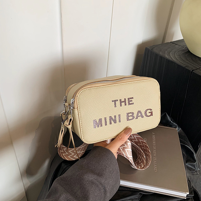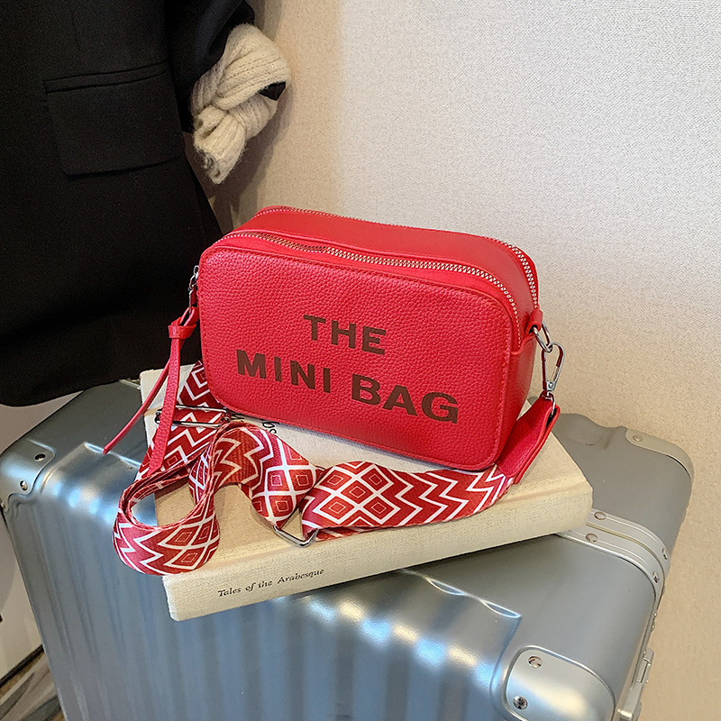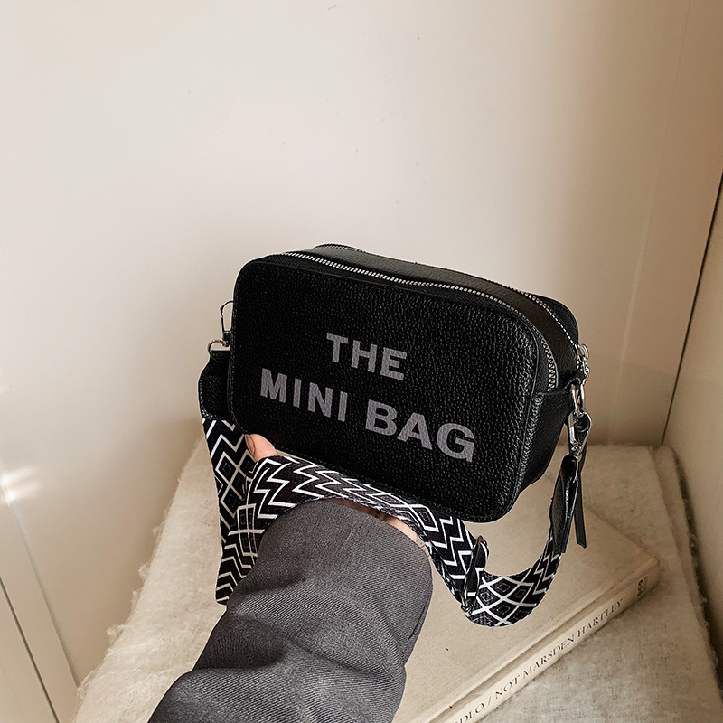한국 스타일 더블 풀 콘트라스트 컬러 와이드 숄더 스트랩 텍스트 인쇄 편지 2025 새로운 패션 트렌디 숄더 크로스 바디 카메라 백