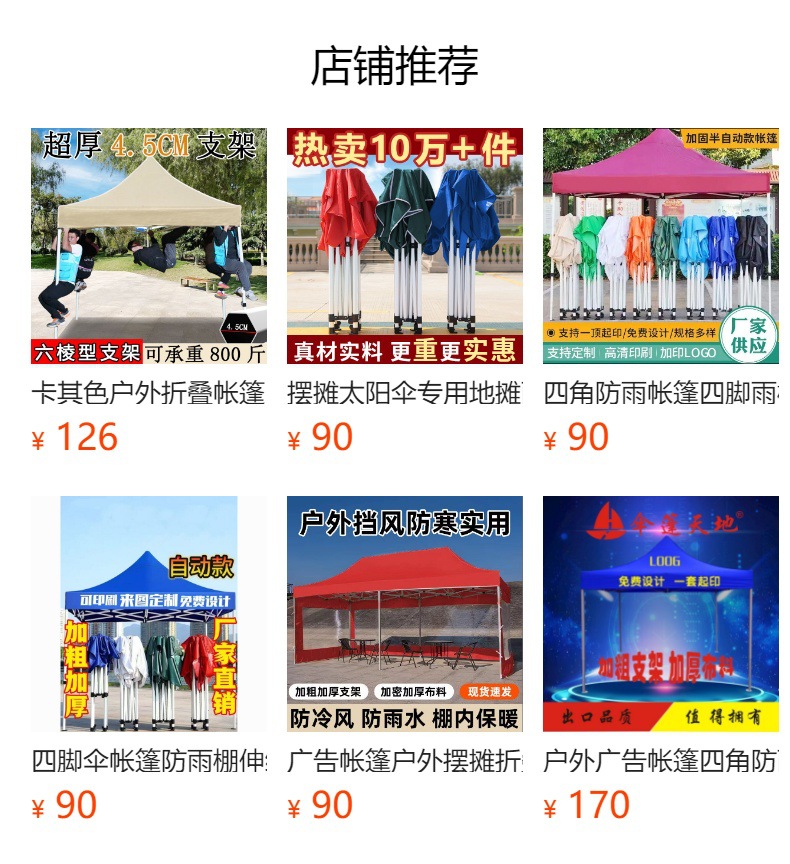 카키 4 개의 코너 텐트 우산 야외 비오는 광고 텐트 인쇄 큰 차양 우산 스톨 폴딩 바베큐스토어 가기