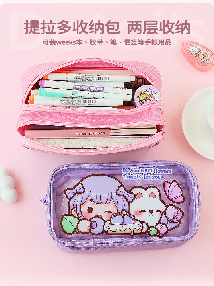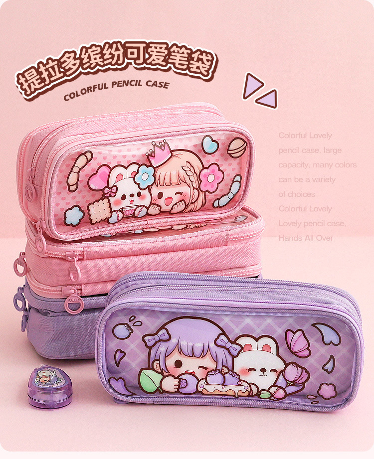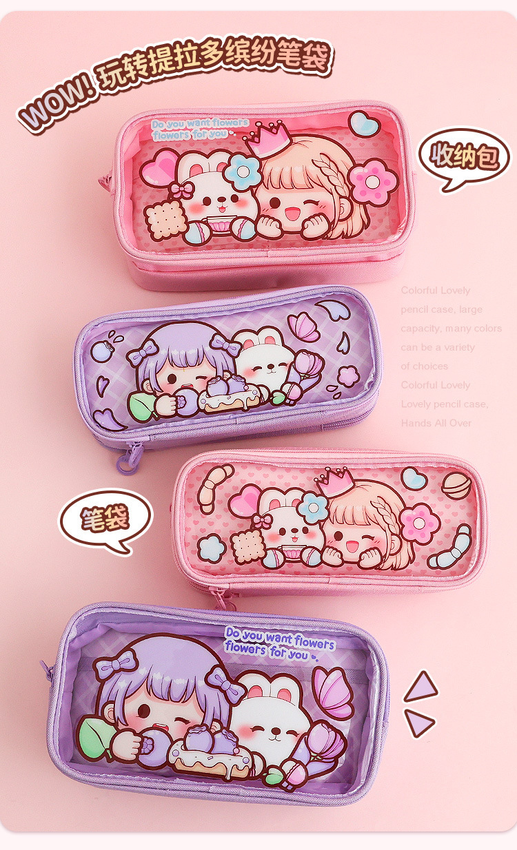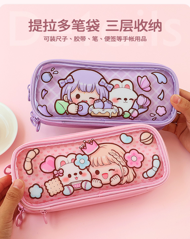 티라도 다채로운 디저트 연필 가방 대용량 투명한 손 계정 보관 가방 손 계정 소녀 학생 문구 연필 케이스
