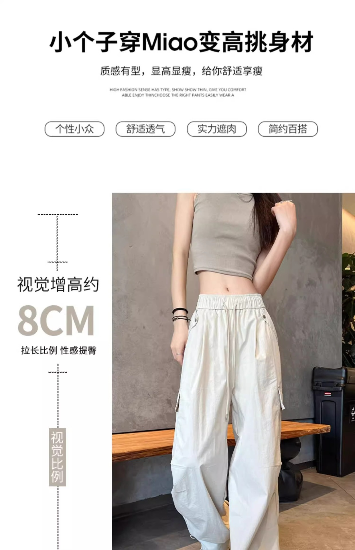 145 짧은 등반 미국 스포츠 바지 오버볼 여성 느슨한 봄과 가을 넓은 다리 캐주얼 바지 150 높은 허리스토어 가기