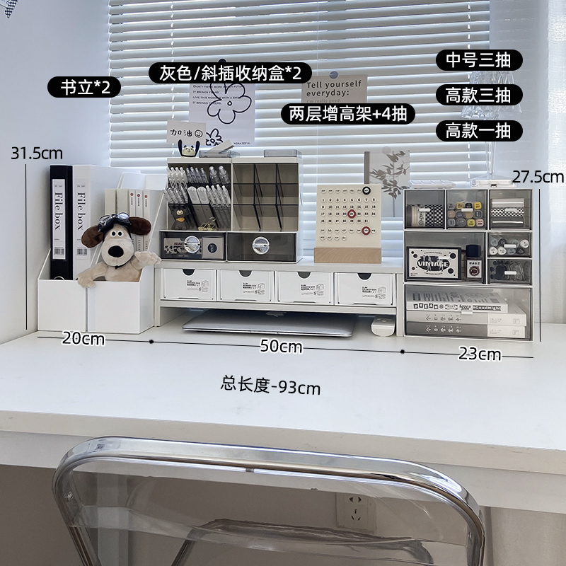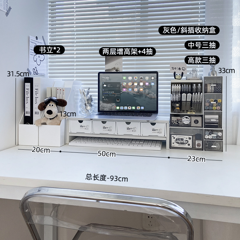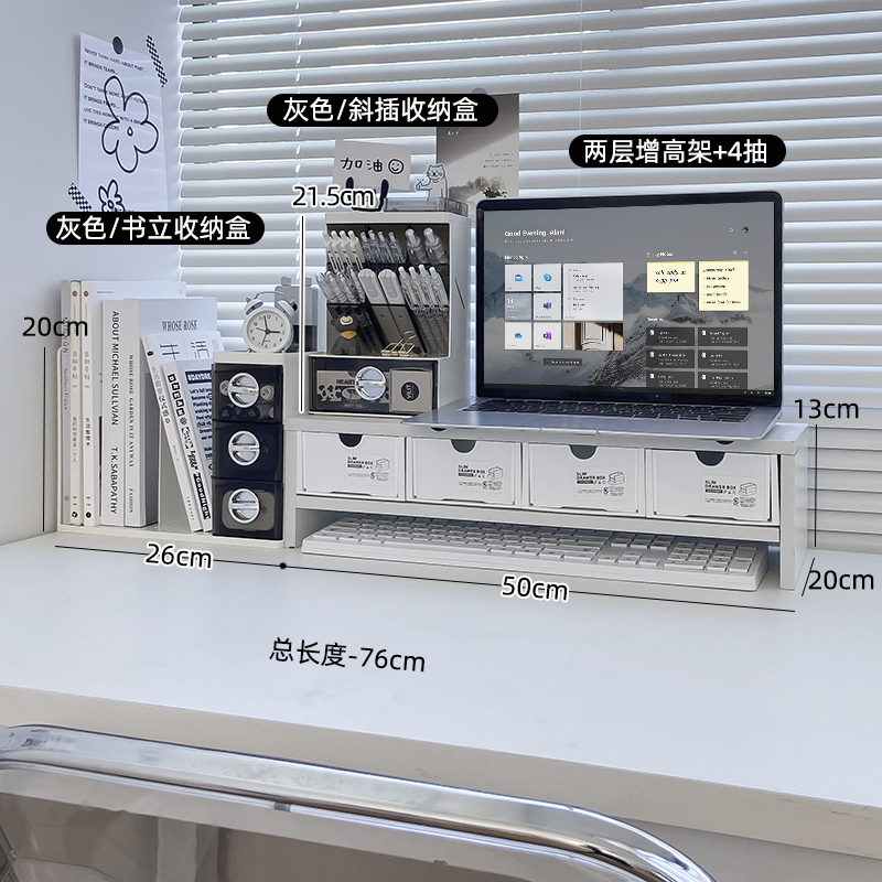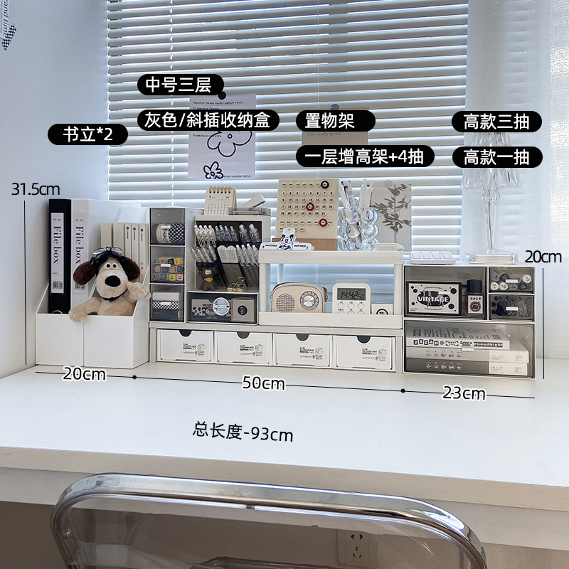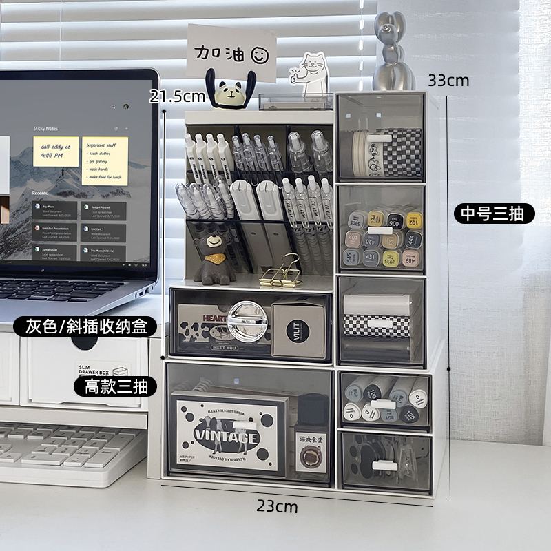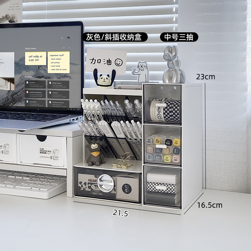• 회색 경사 인서트 + 중간 크기 서랍 3개, 무료 소형 수납 상자