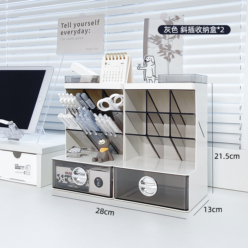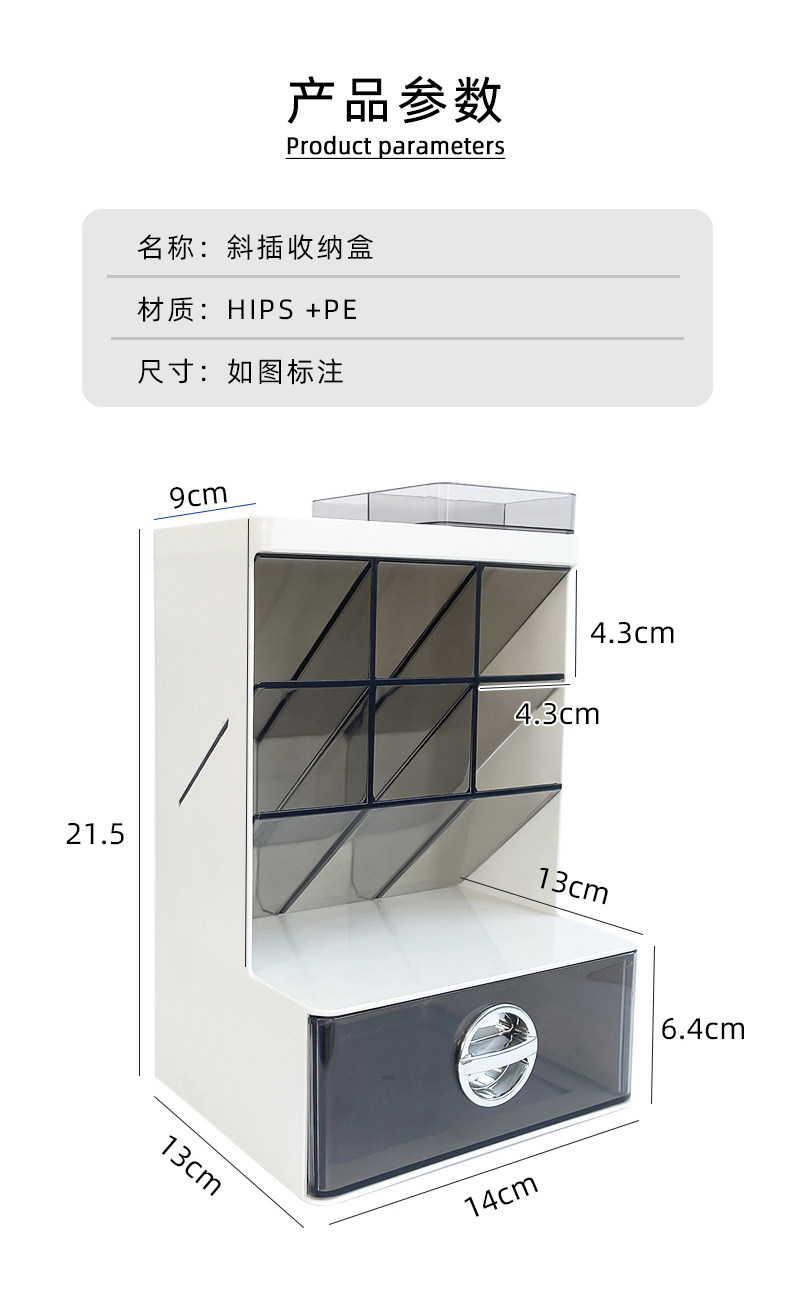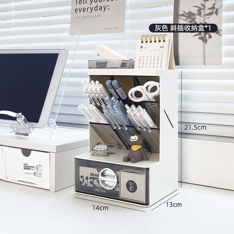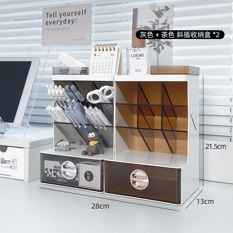 펜 홀더 저장 상자 비스듬한 펜 홀더 학생 책상 사무실 데스크탑 문구 서랍 투명 화장품 방진