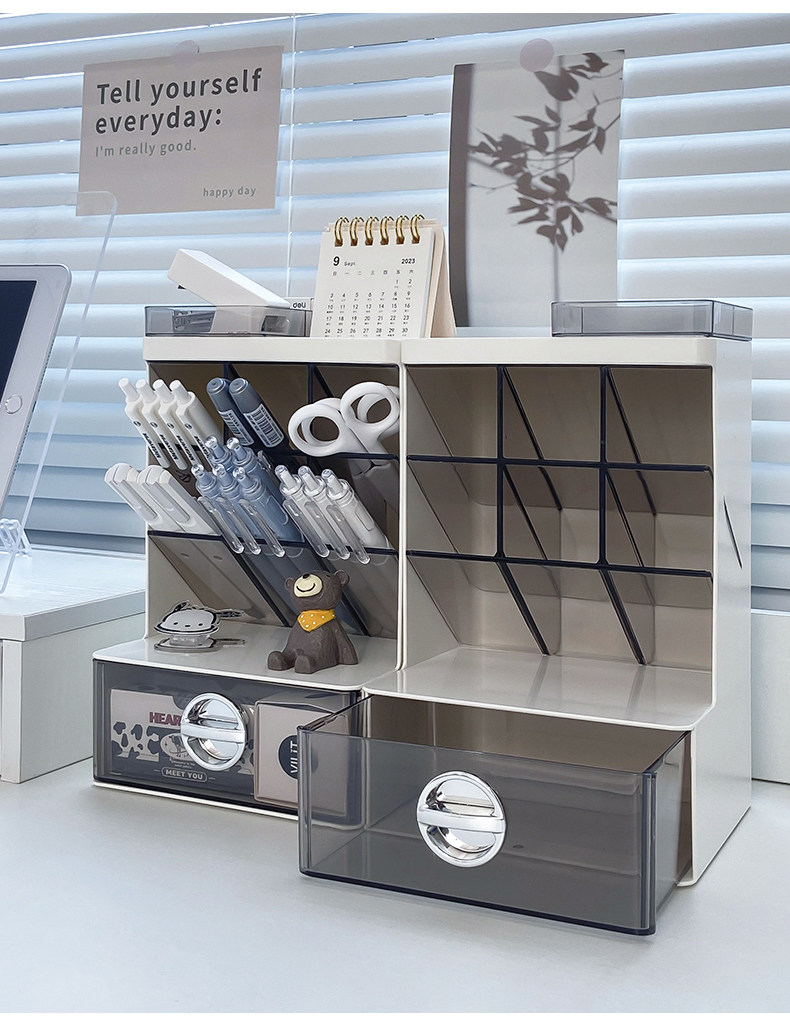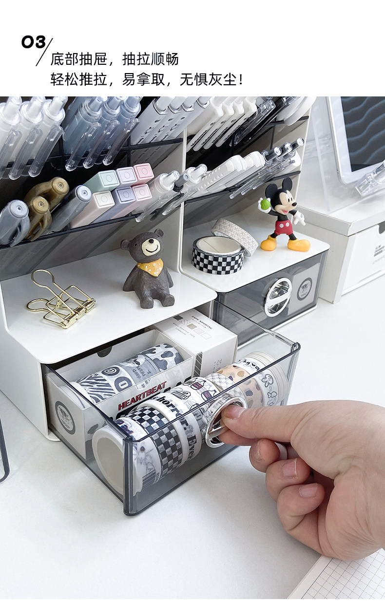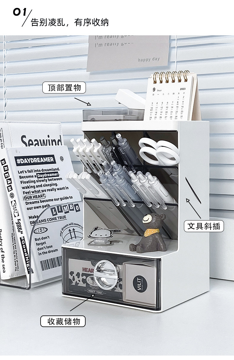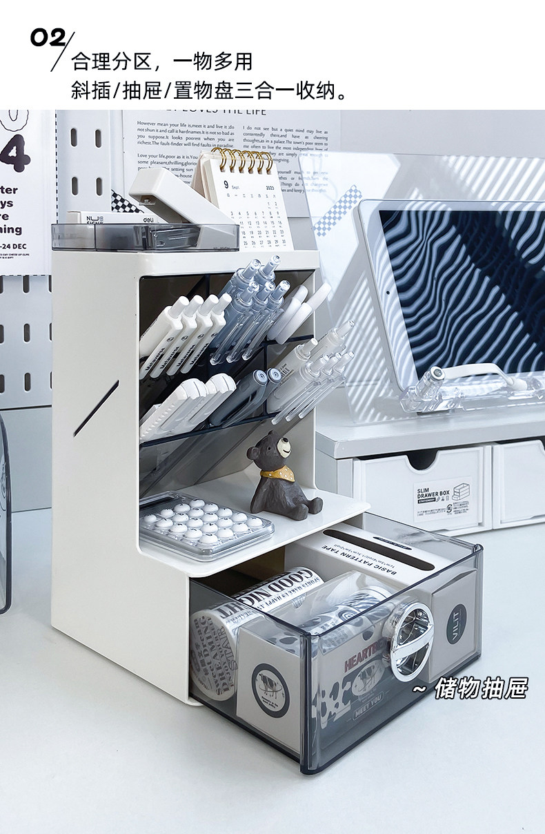 펜 홀더 저장 상자 비스듬한 펜 홀더 학생 책상 사무실 데스크탑 문구 서랍 투명 화장품 방진