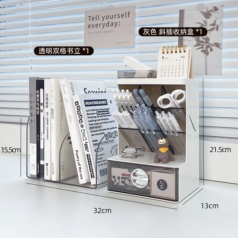 • 회색 북엔드 + 회색 대각선 인서트, 무료 작은 수납 상자