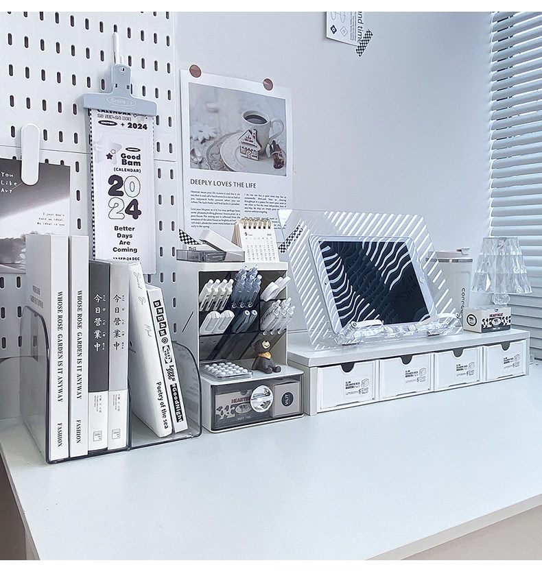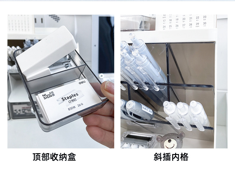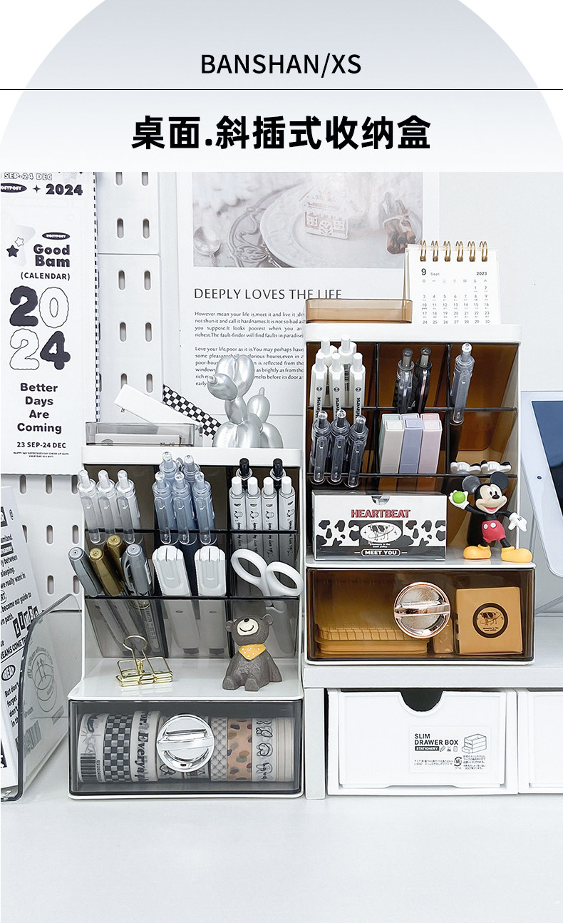 펜 홀더 저장 상자 비스듬한 펜 홀더 학생 책상 사무실 데스크탑 문구 서랍 투명 화장품 방진스토어 가기