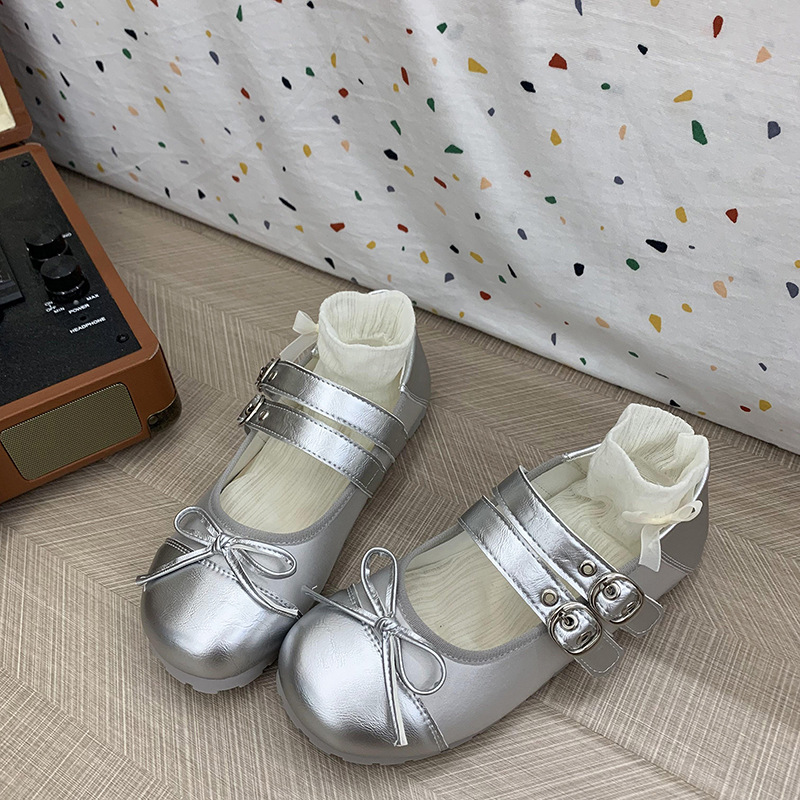 실버 빈티지 프랑스 스타일 라운드 발가락 얕은 입 플랫 신발 여성의 2024 새로운 여름 부드러운 밑바닥 발레 스타일 메리 제인 신발스토어 가기