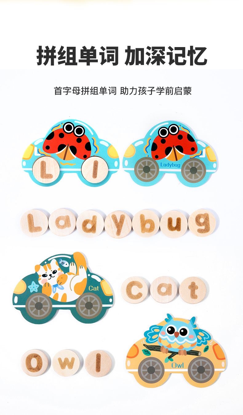 목조 자동차 단어 맞춤법 게임 유치원 조기 교육 계몽주의 영어 편지 일치하는 건물 블록 어린이 교육 장난감스토어 가기