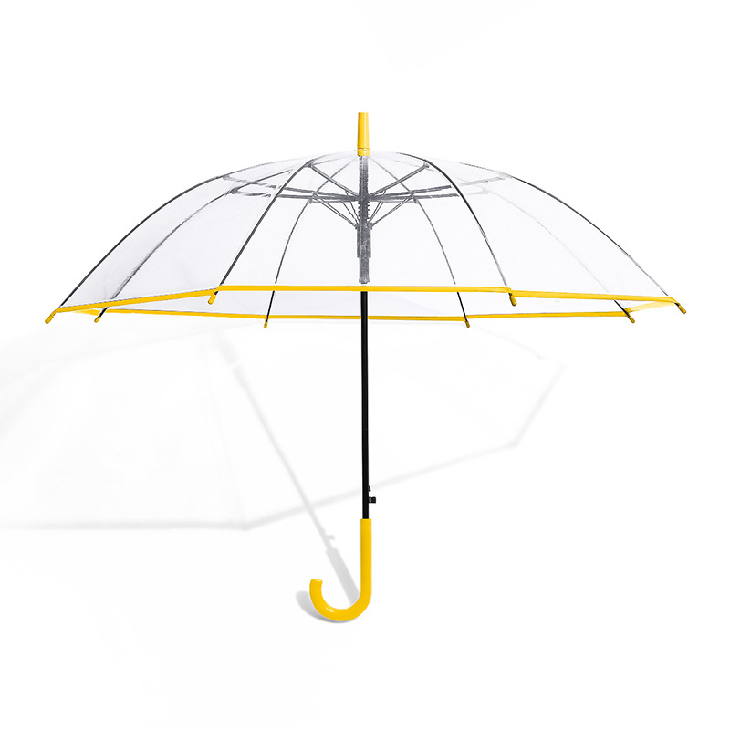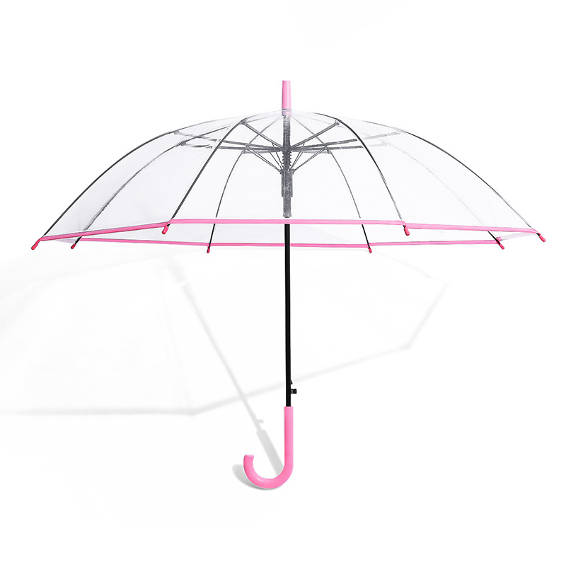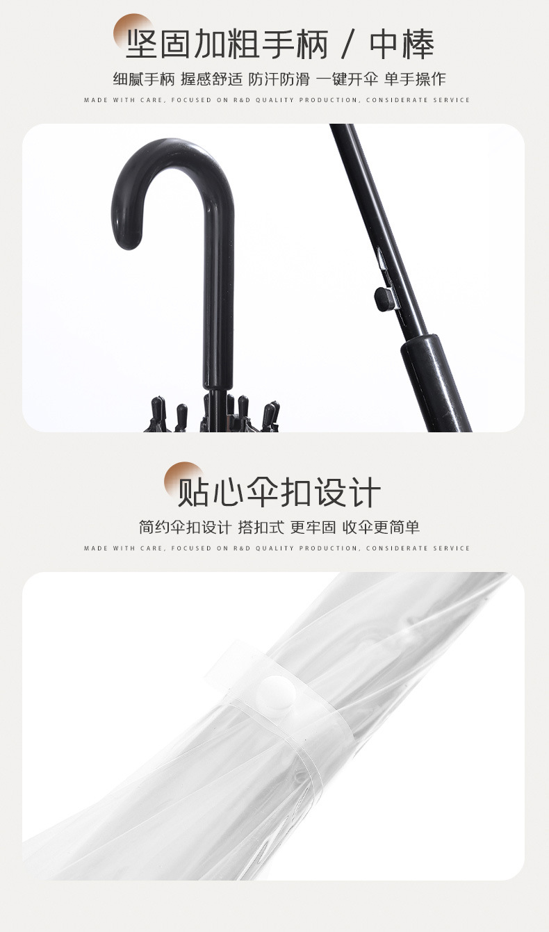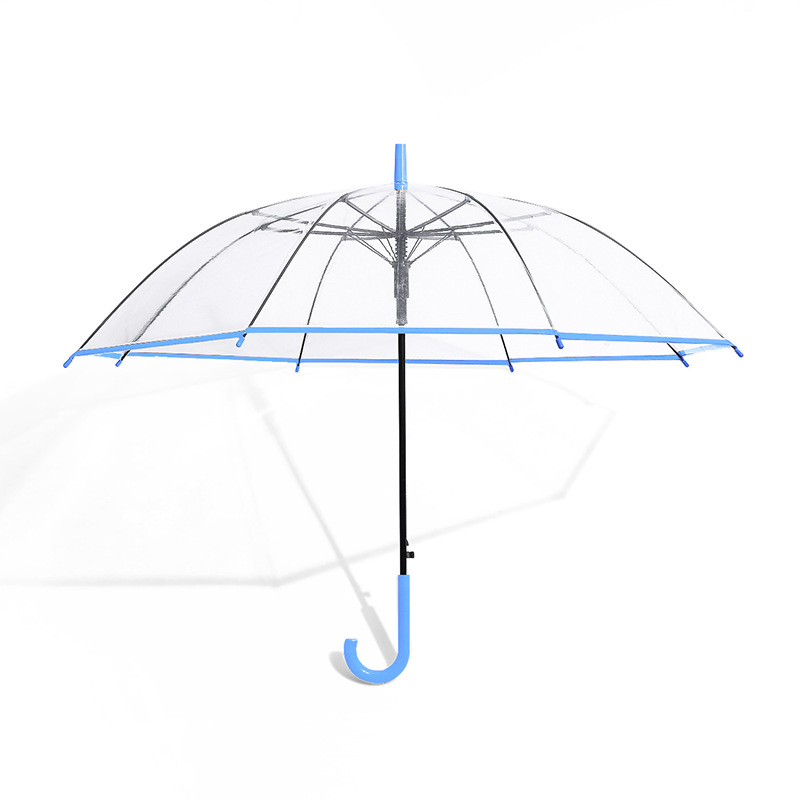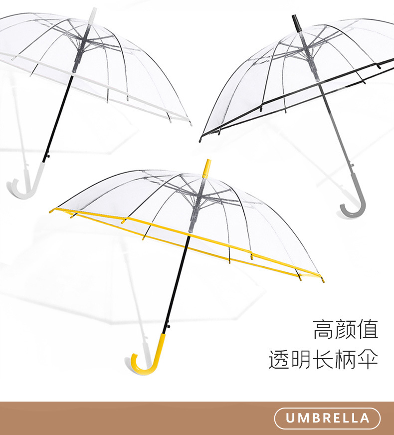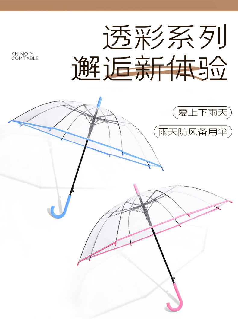 공장 직접 긴 핸들 안티 헤일로 투명 우산 자동 색상 투명 우산 웨딩 광고 선물 우산 로고