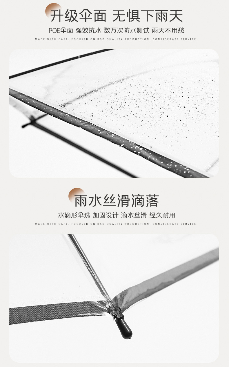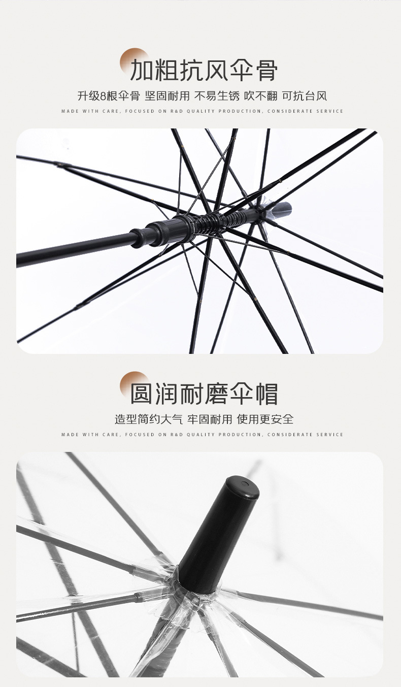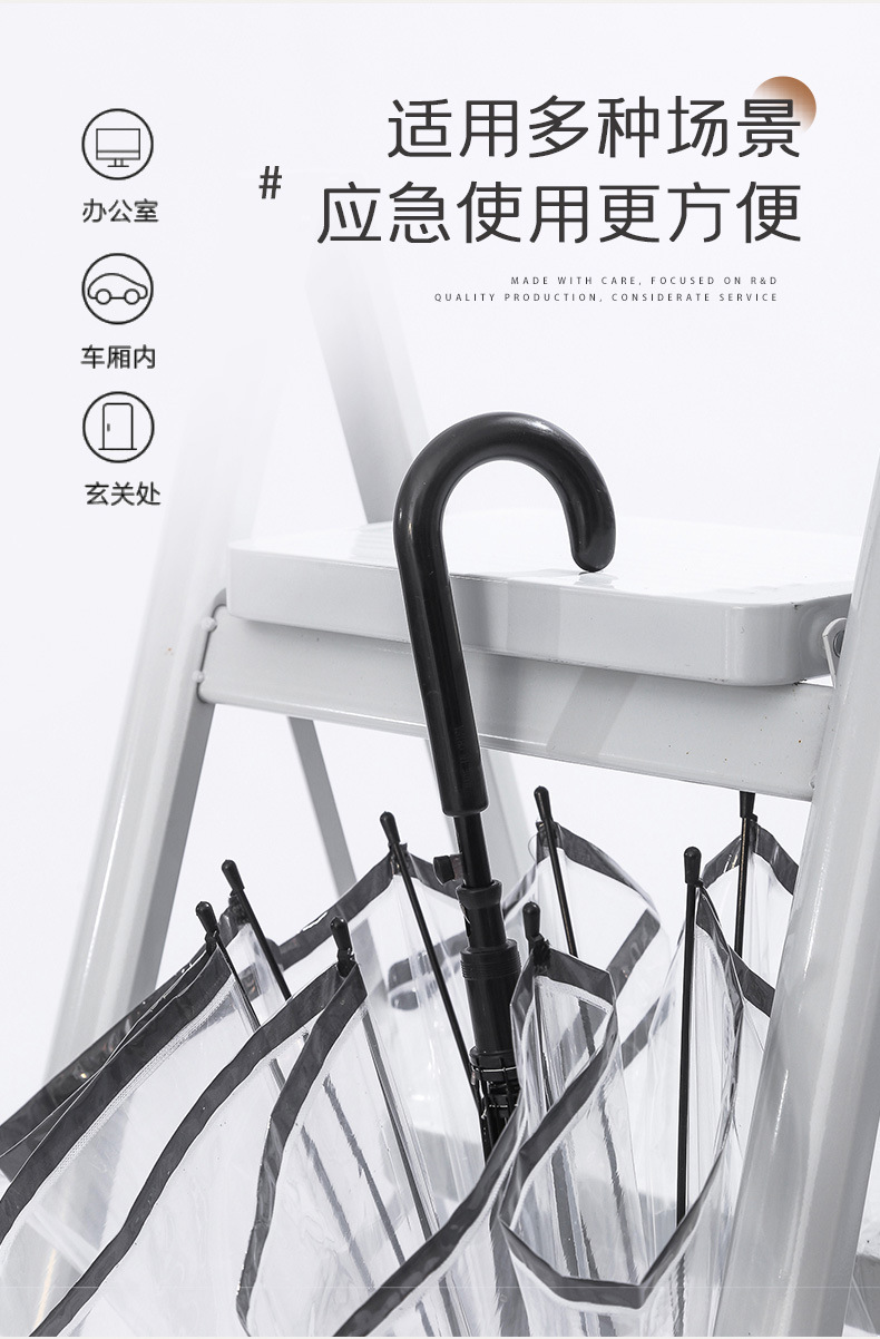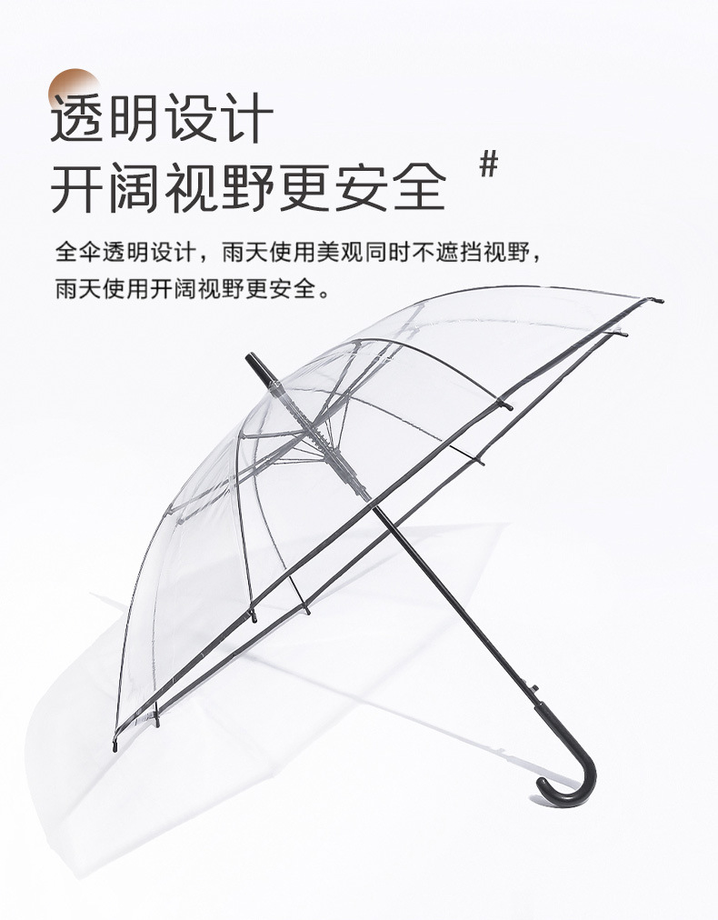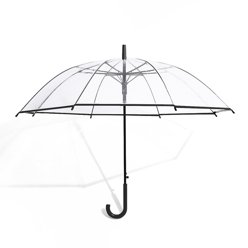 공장 직접 긴 핸들 안티 헤일로 투명 우산 자동 색상 투명 우산 웨딩 광고 선물 우산 로고