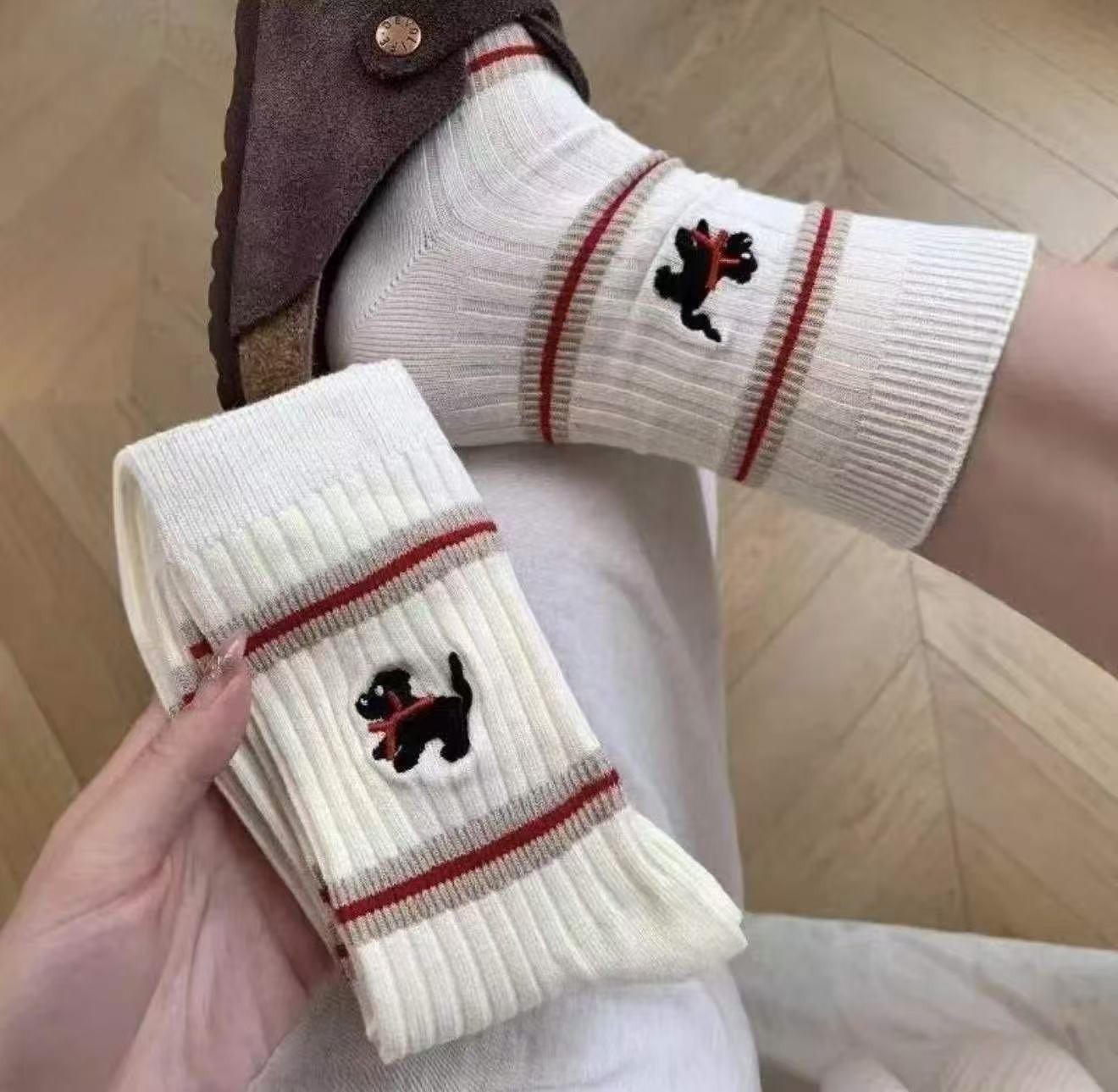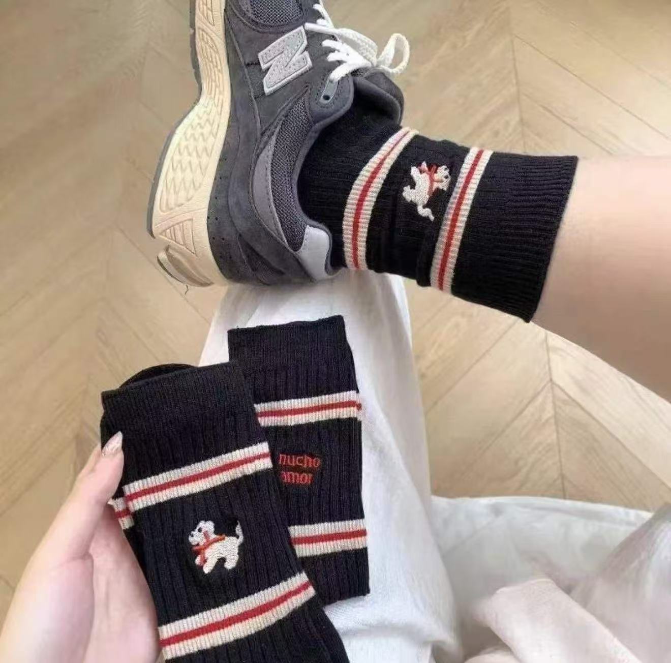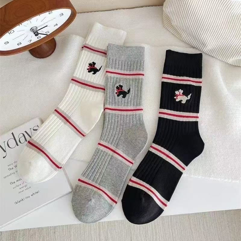 봄 가을 한국 스타일 동대문 인스 스타일 달콤하고 귀여운 컬리지 스타일 스트라이프 강아지 중목 양말 공장 직판 여성용