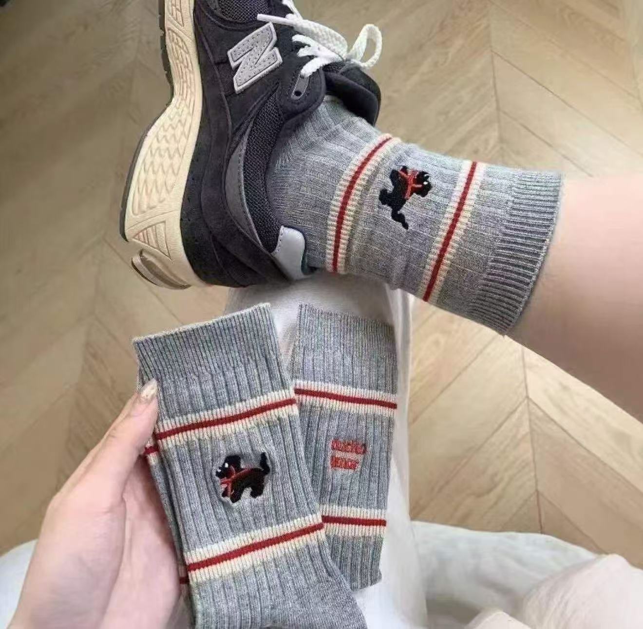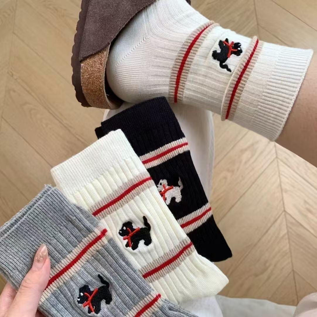 봄 가을 한국 스타일 동대문 인스 스타일 달콤하고 귀여운 컬리지 스타일 스트라이프 강아지 중목 양말 공장 직판 여성용스토어 가기