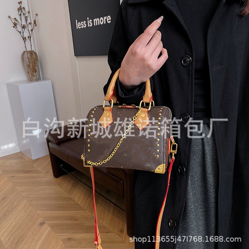 2025 복고풍 스타일의 새로운 체인 보스턴 베개 가방 국경 여성 어깨 슬렁 휴대 전화 가방 107 #