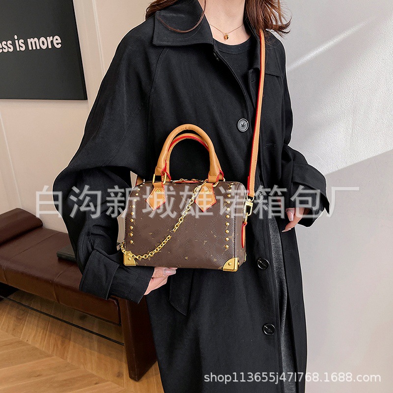 2025 복고풍 스타일의 새로운 체인 보스턴 베개 가방 국경 여성 어깨 슬렁 휴대 전화 가방 107 #스토어 가기
