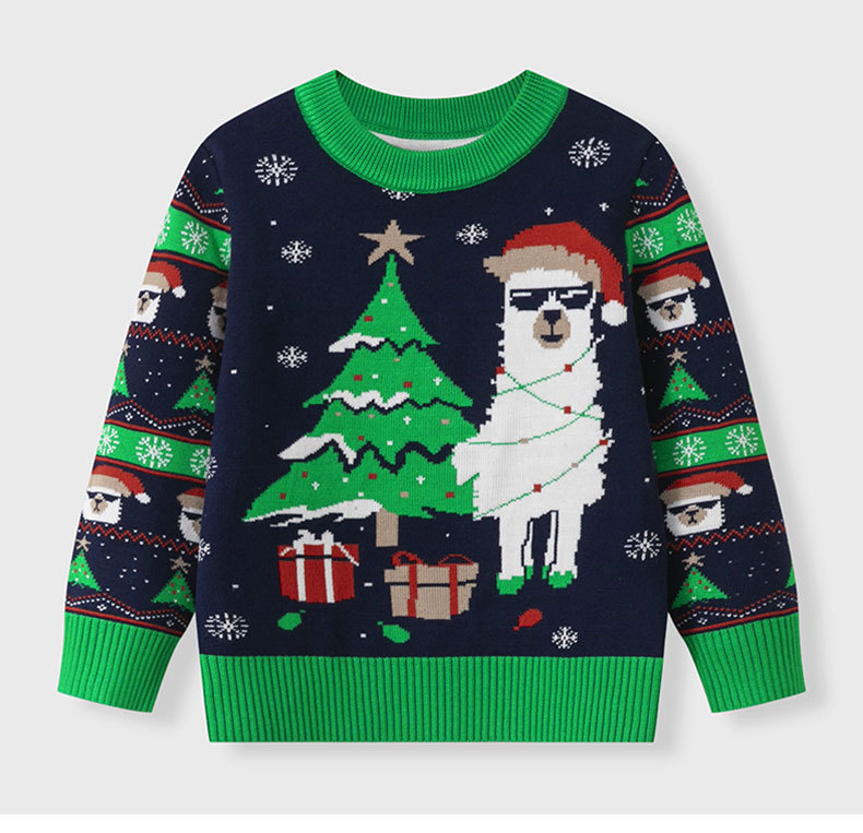 2025 가을과 겨울 유럽과 미국의 새로운 어린이 크리스마스 만화 스웨터 소년과 소녀 아기 풀오버 기본 스웨터