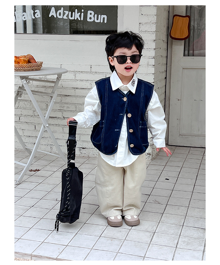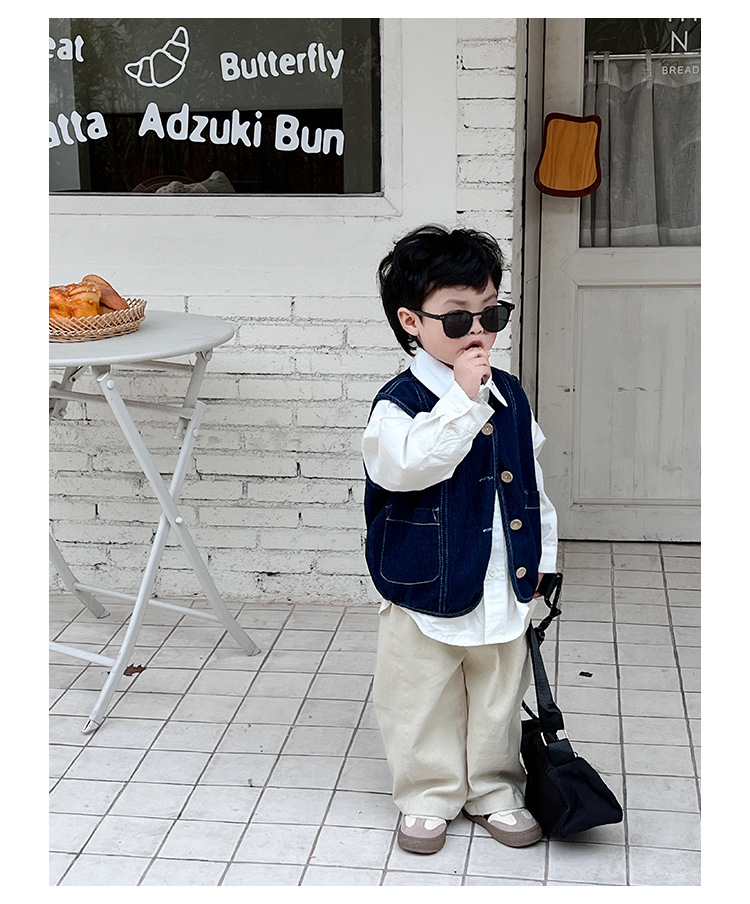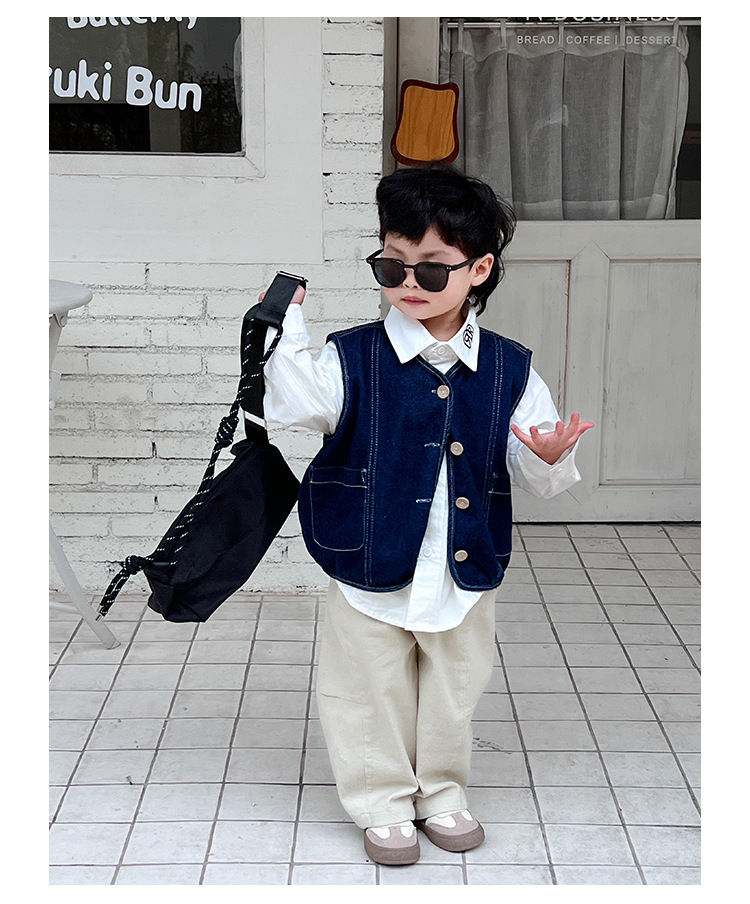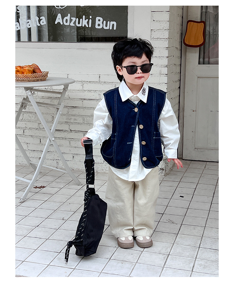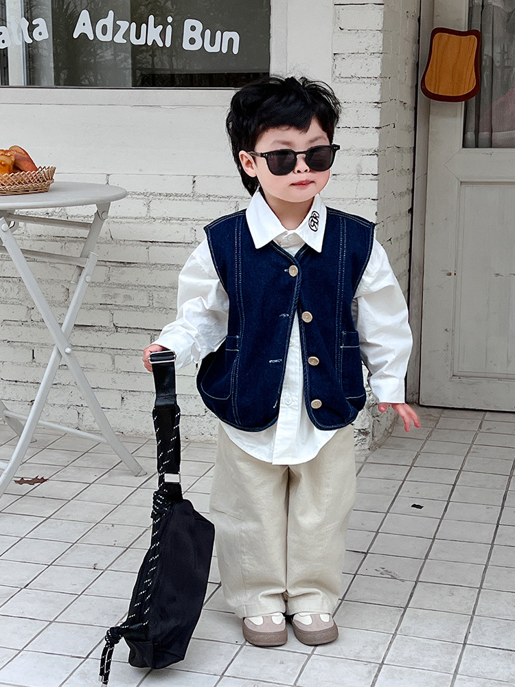 어린이 데님 양복 조끼 봄과 가을 2025 새 아기 한국식 코트 한국식 소년 양복 조끼스토어 가기