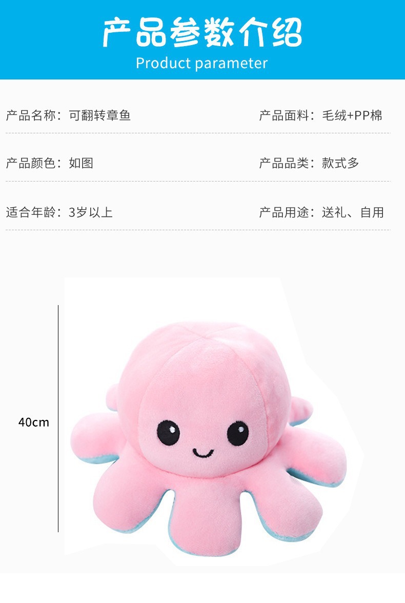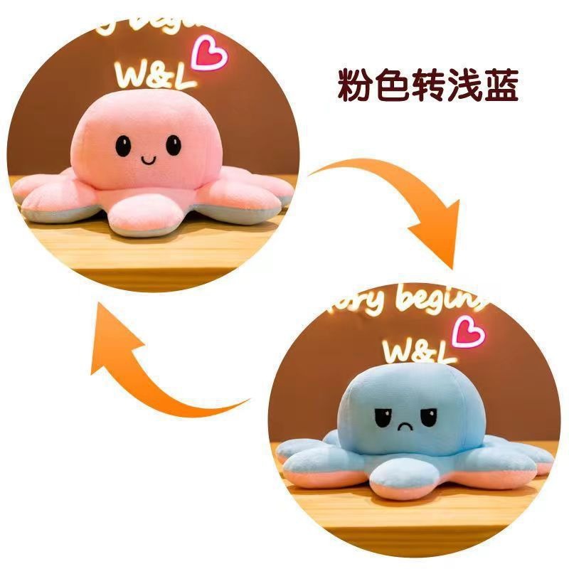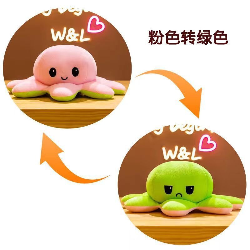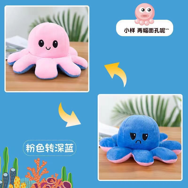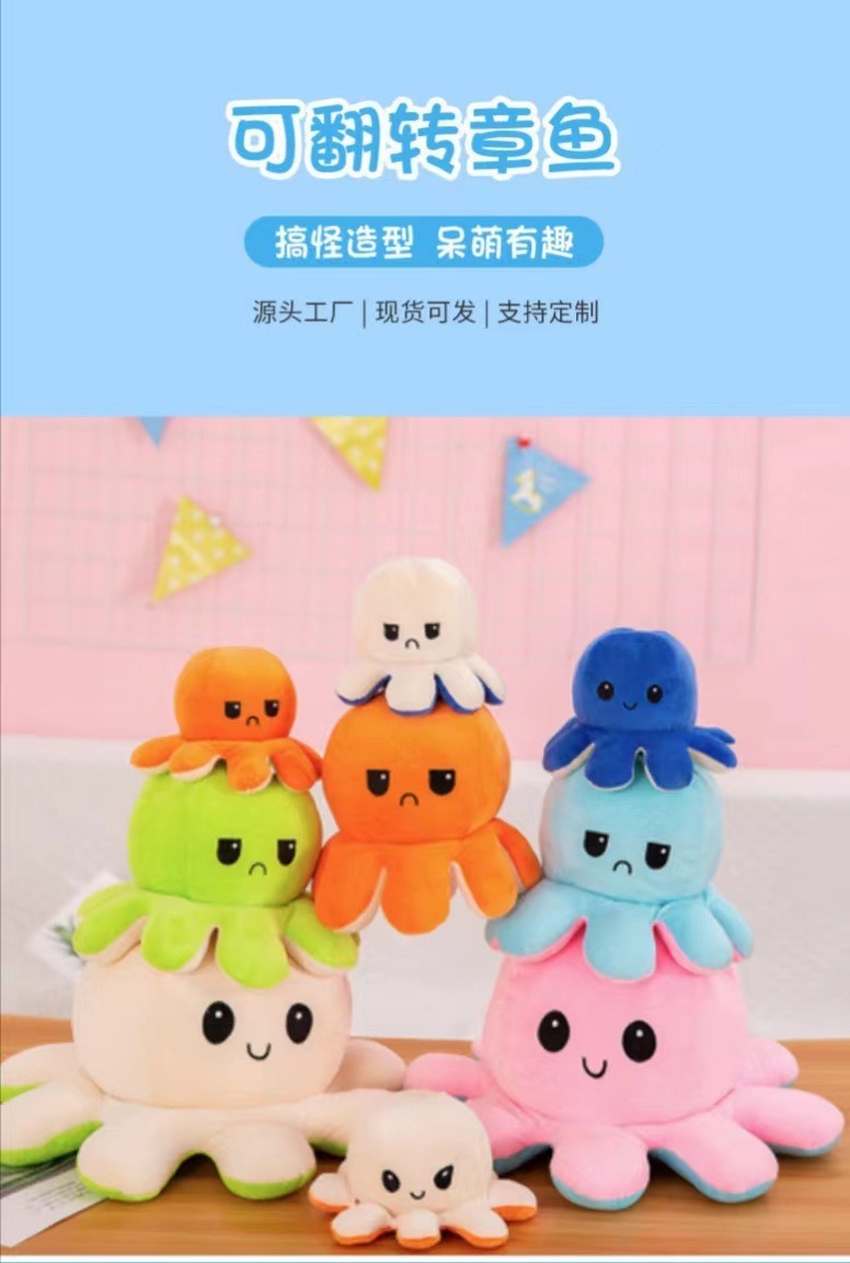 귀여운 플립 문어 봉제 장난감 양면 표현 플립 낙지 인형 봉제 인형 도매 재고스토어 가기