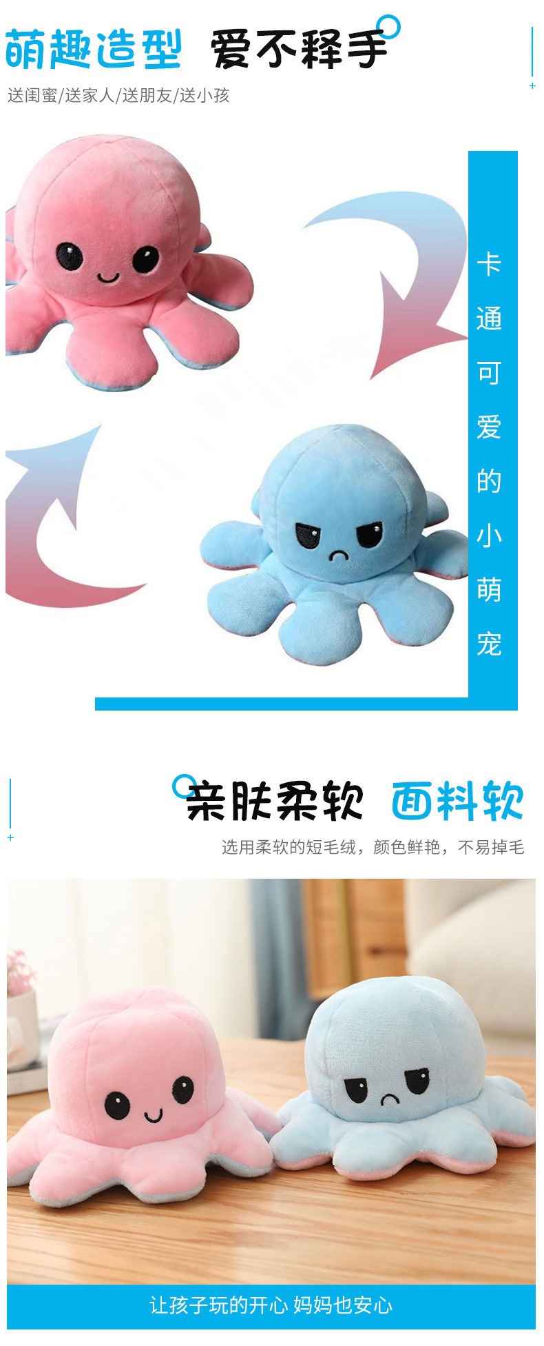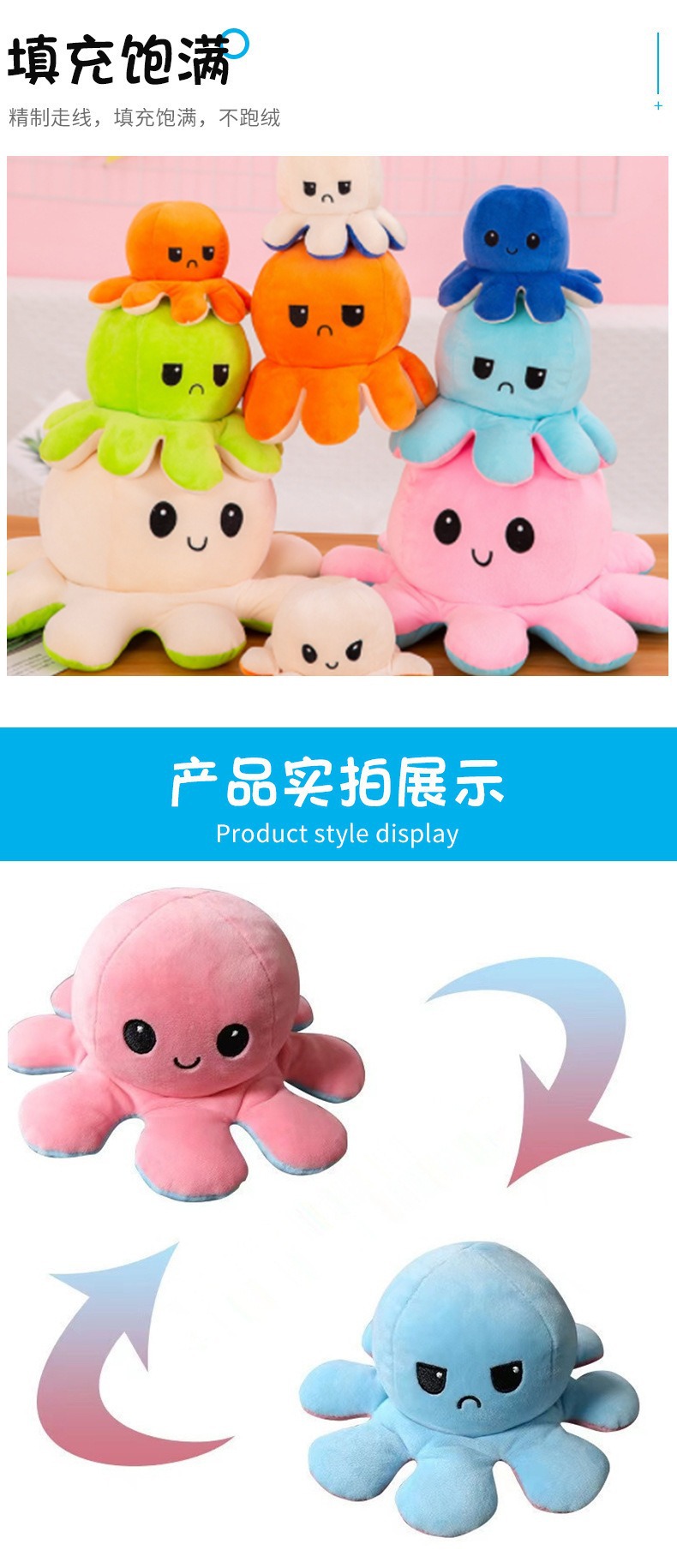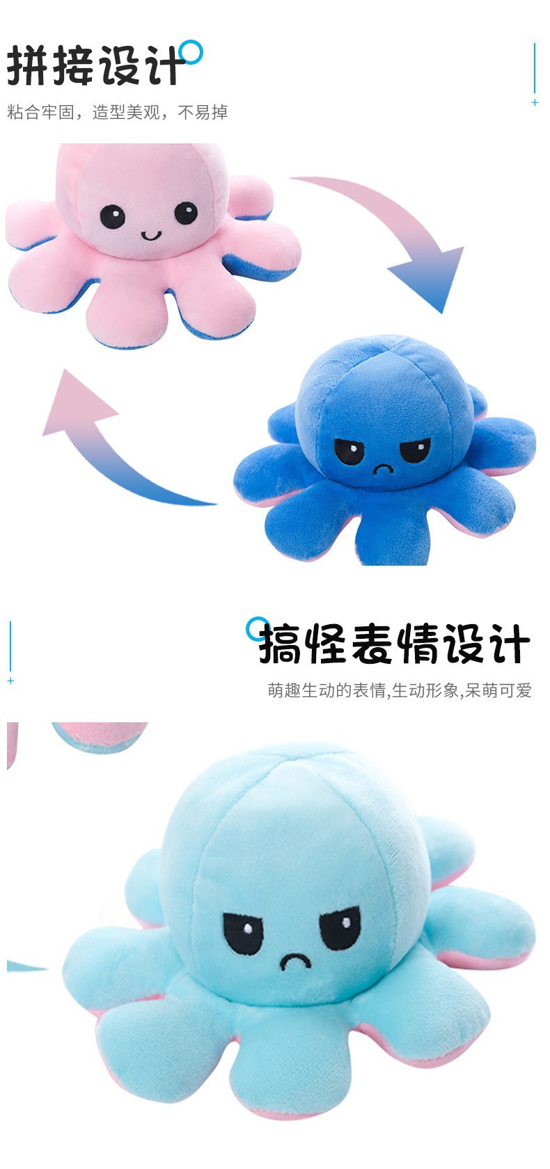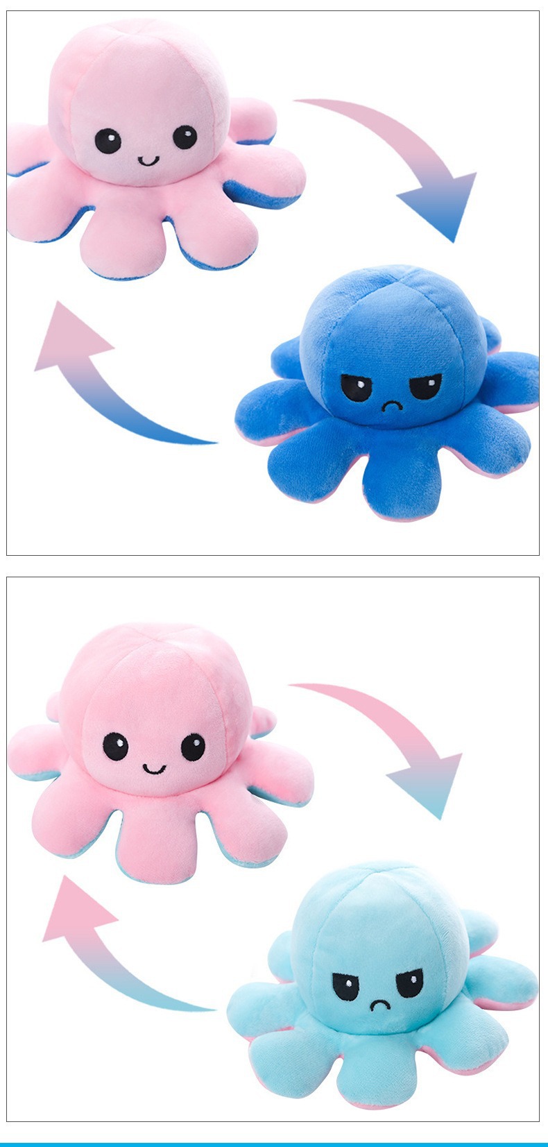 귀여운 플립 문어 봉제 장난감 양면 표현 플립 낙지 인형 봉제 인형 도매 재고스토어 가기