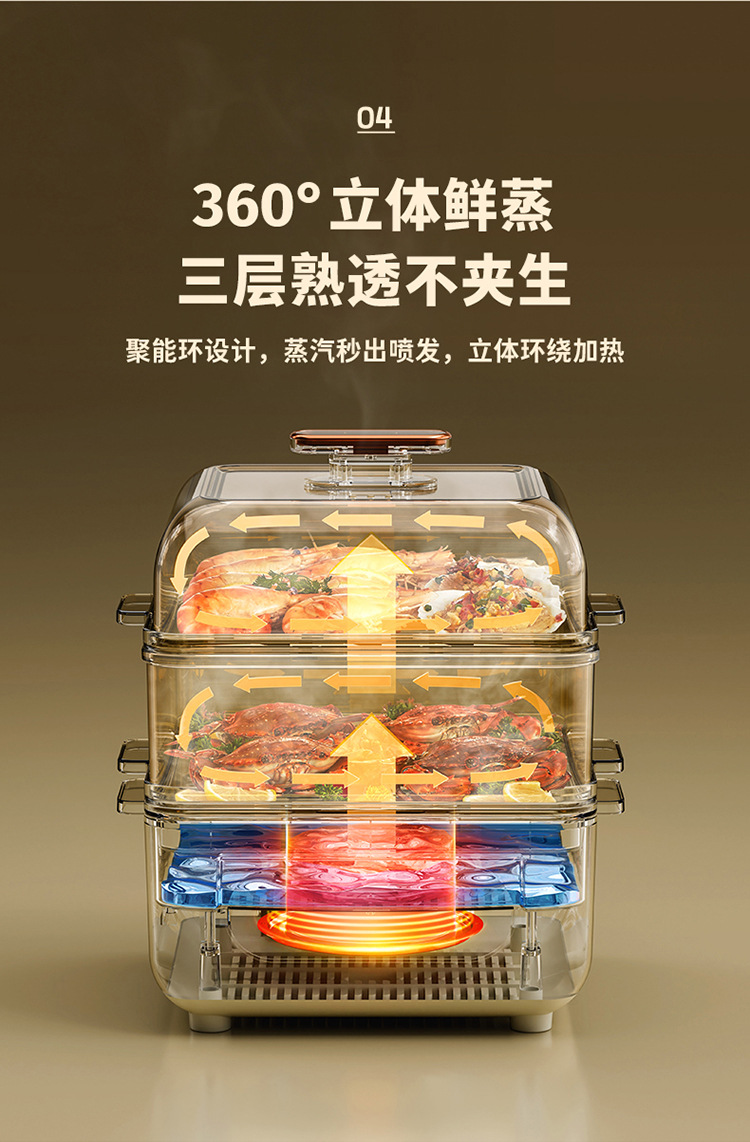 현대 지능형 전기 증기선 가정용 대용량 다기능 전기 증기선 예약 주방 아침 식사 기계 3 층